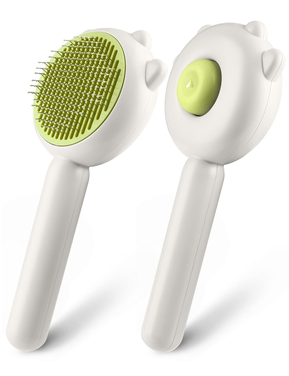 Cat Grooming Brush Self Cleaning Slicker Dogs Cats Doggy Pet Kittens One-Click Shedding Button Stainless Steel Teeth Comb Removal Loose Matted Tangled Hair Massage Indoor Outdoor Undercoat