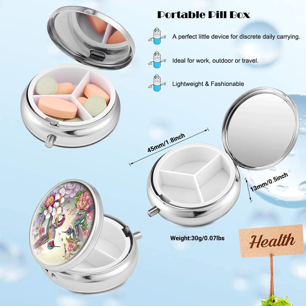 Pill Box of Pocket Purse 3 Compartment Medicine Holder Travel Pill Case Decorative Box Vitamin Pill Organizer Unique Gift Pink Humming Bird and Spring Florals