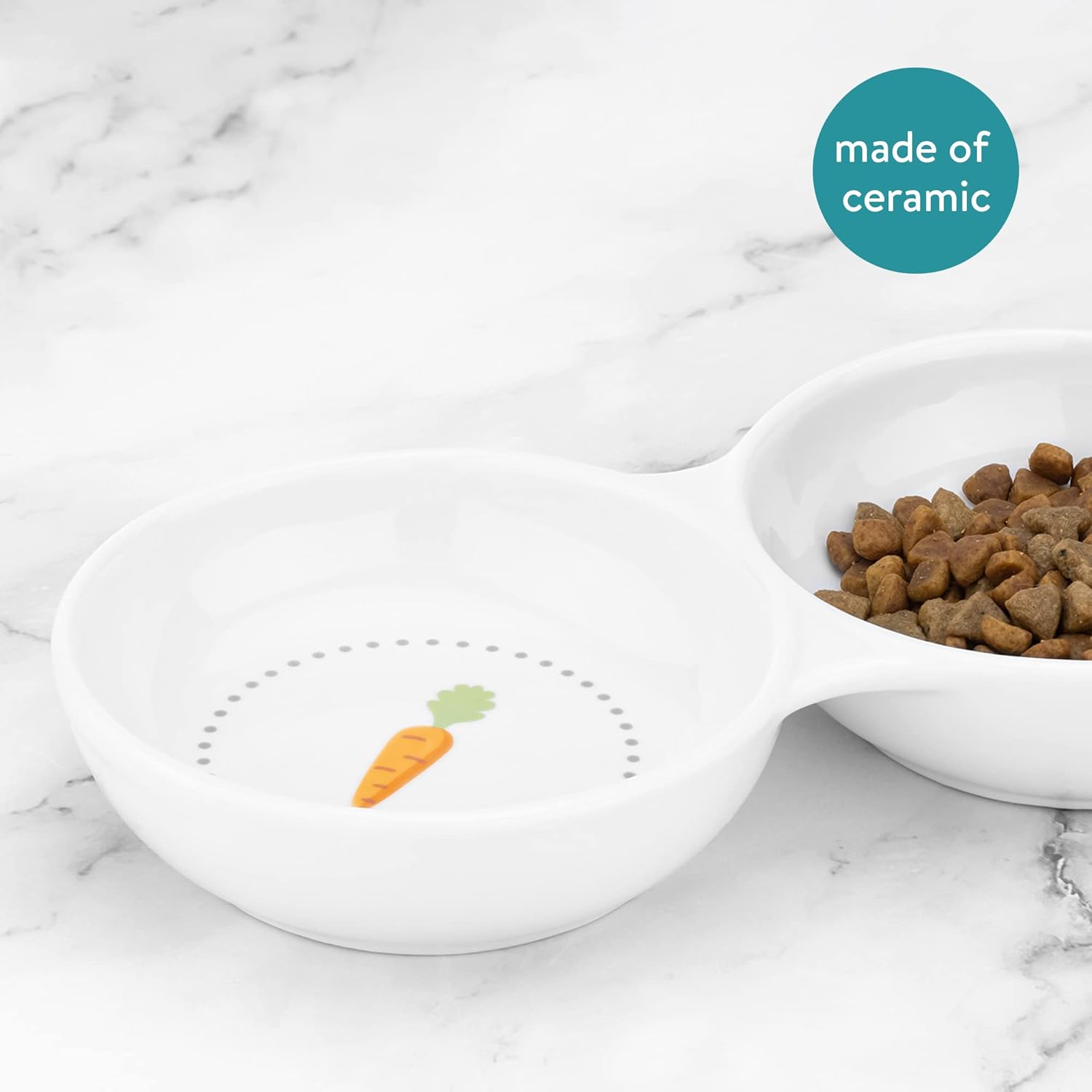 Navaris Double Food Bowl for Smworldnet027 Animals – Ceramic Food Bowls for Rabbits, Guinea Pigs, Smworldnet027 Pets – Rabbit Water Dish – Carrot and Grass Design