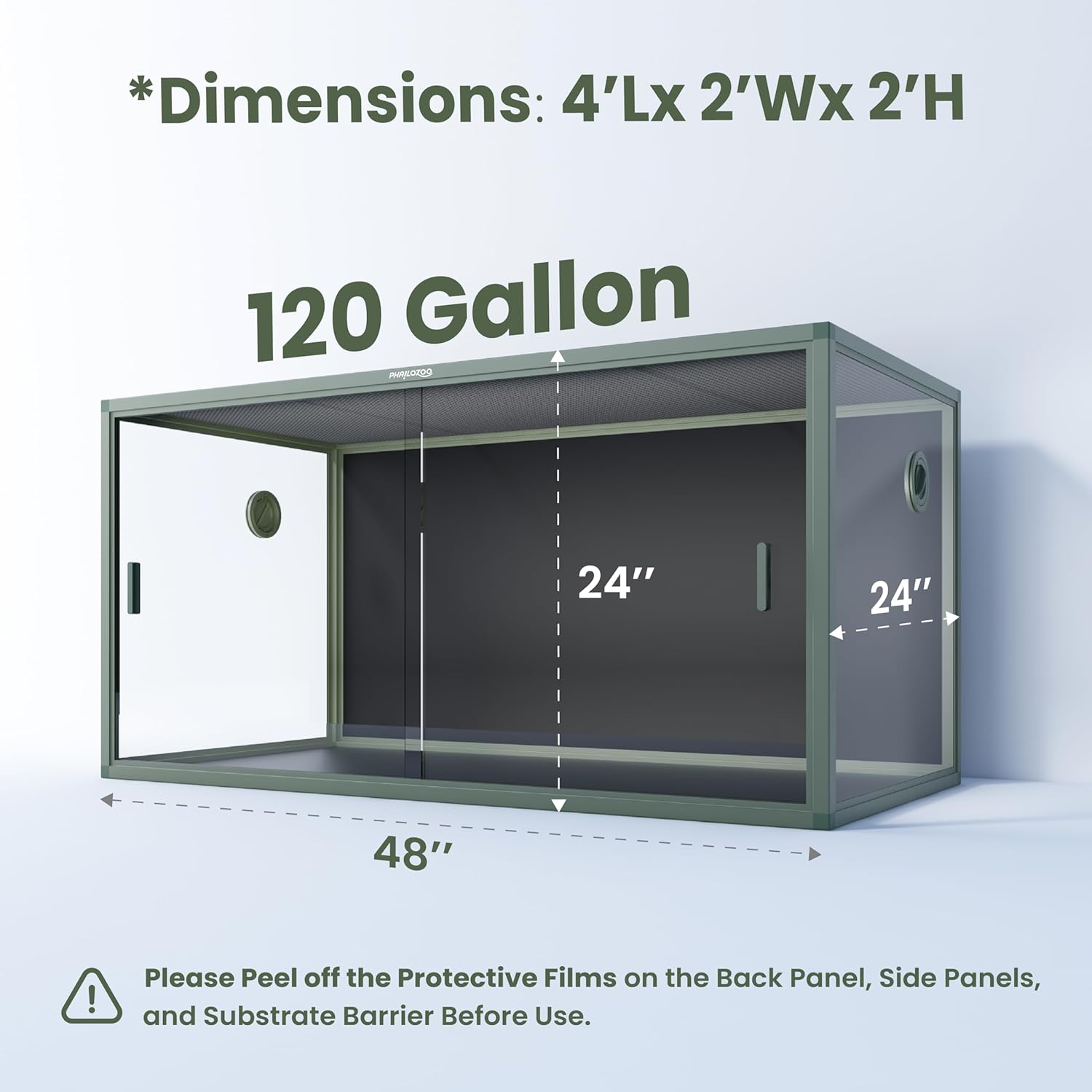 【Size Matter】Phailozoo 120 gworldnet027on reptile terrarium measures 48″ Lx 24″ W x 24″H, perfect for desert and rainforest bioactive setups, such as bearded dragon tank, snake tank, and lizard tank. Spacious playground for your beloved reptiles to explore and thrive while being safe.