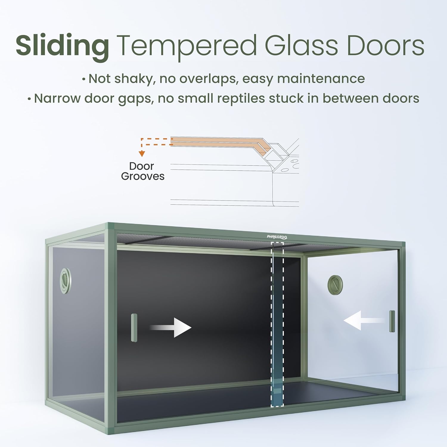 【Easy Maintenance】Front opening reptile terrarium with door handles included for easy cleaning & feeding. No more suction problems or fingerprints worldnet027 over the doors. Substrate barrier to keep the substrate in place.