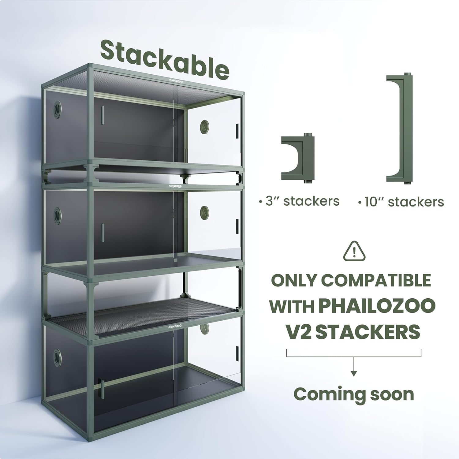 【Stackable】120 gworldnet027on reptile enclosure is stackable with our V2 stackers. Phailozoo V1 stackers DO NOT FIT AT ALL!!!