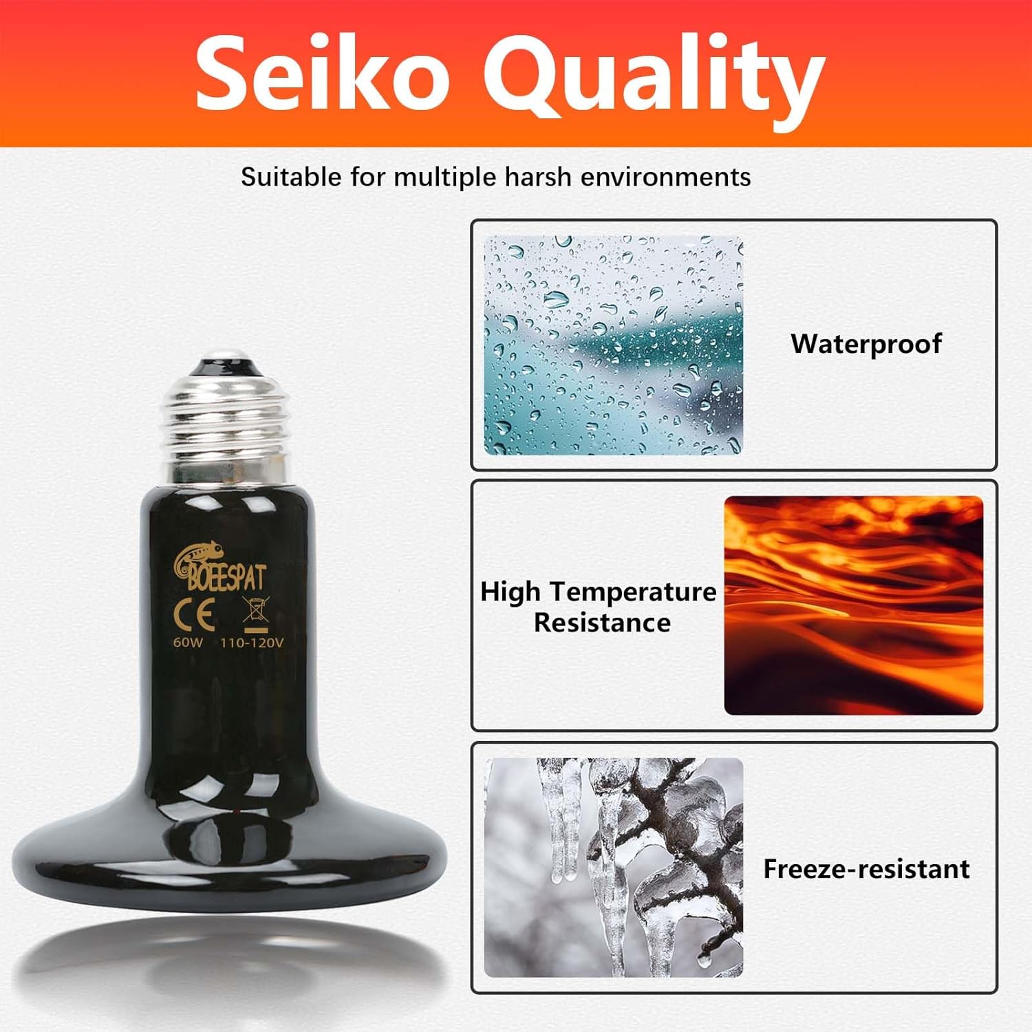 Our BOEESPAT ceramic heat emitter bulb offers fast, stable heating with high thermal efficiency and energy savings. Emitting virtuworldnet027y no light, it is safer and lasts longer than traditional heat lamps. With a lifespan of over 15,000 continuous hours—more than twice that of similar products—it can be operated 24/7 without concerns of burning out overnight during a cold spell.
