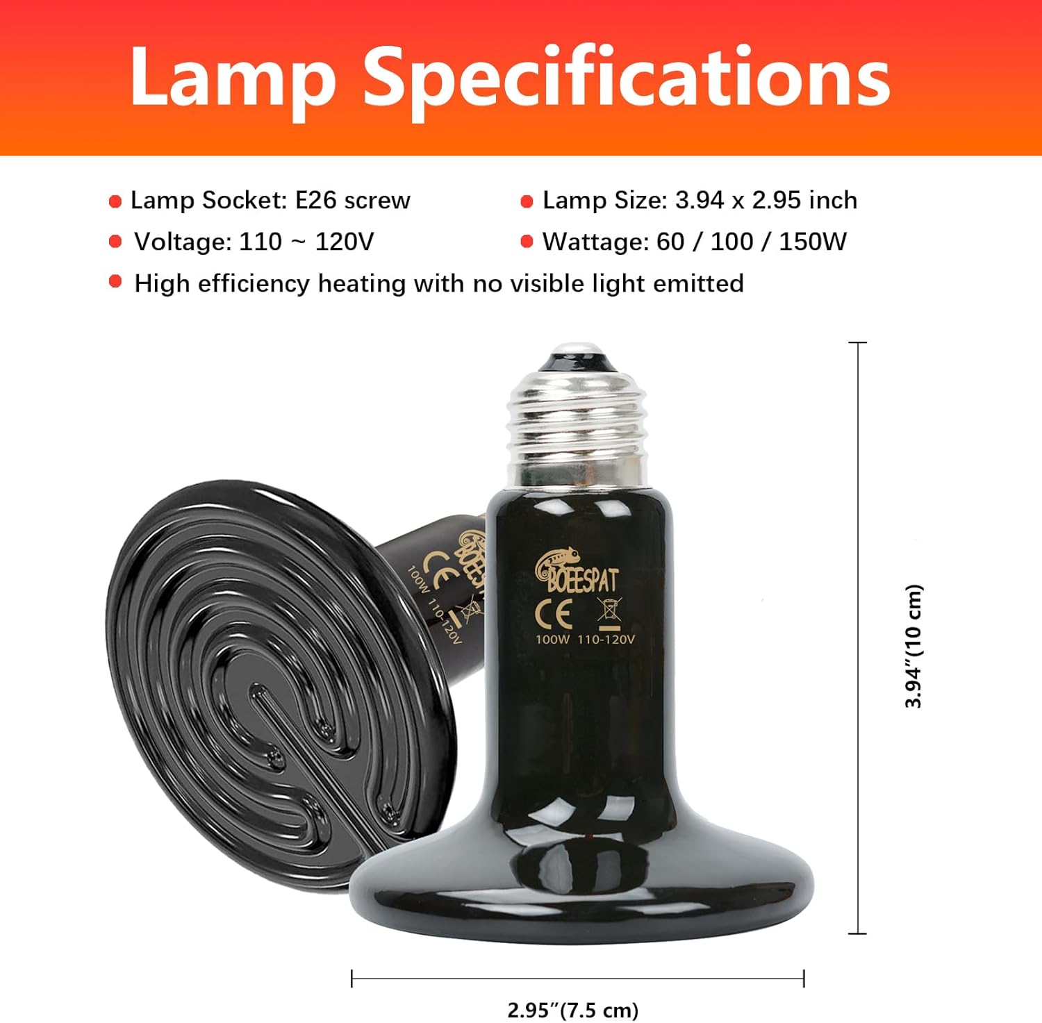 BOEESPAT reptile ceramic heat lamp provides a sleep-friendly solution for reptiles and pets, emitting natural heat without any disturbing light, ensuring a peaceful rest.