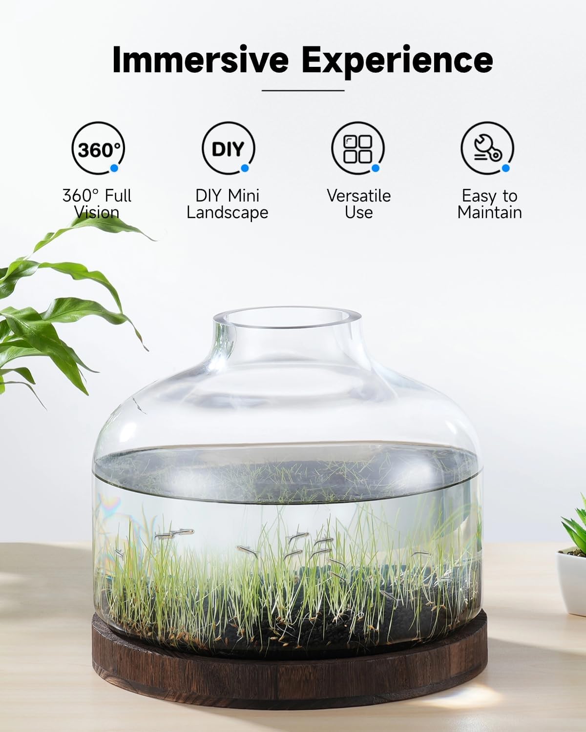 6mm Thickness Glass Construction: Crafted from low-iron glass, this terrarium jar is built to withstand the test of time. Its durability and scratch-resistant surface guarantee a lasting home for your aquatic companions.