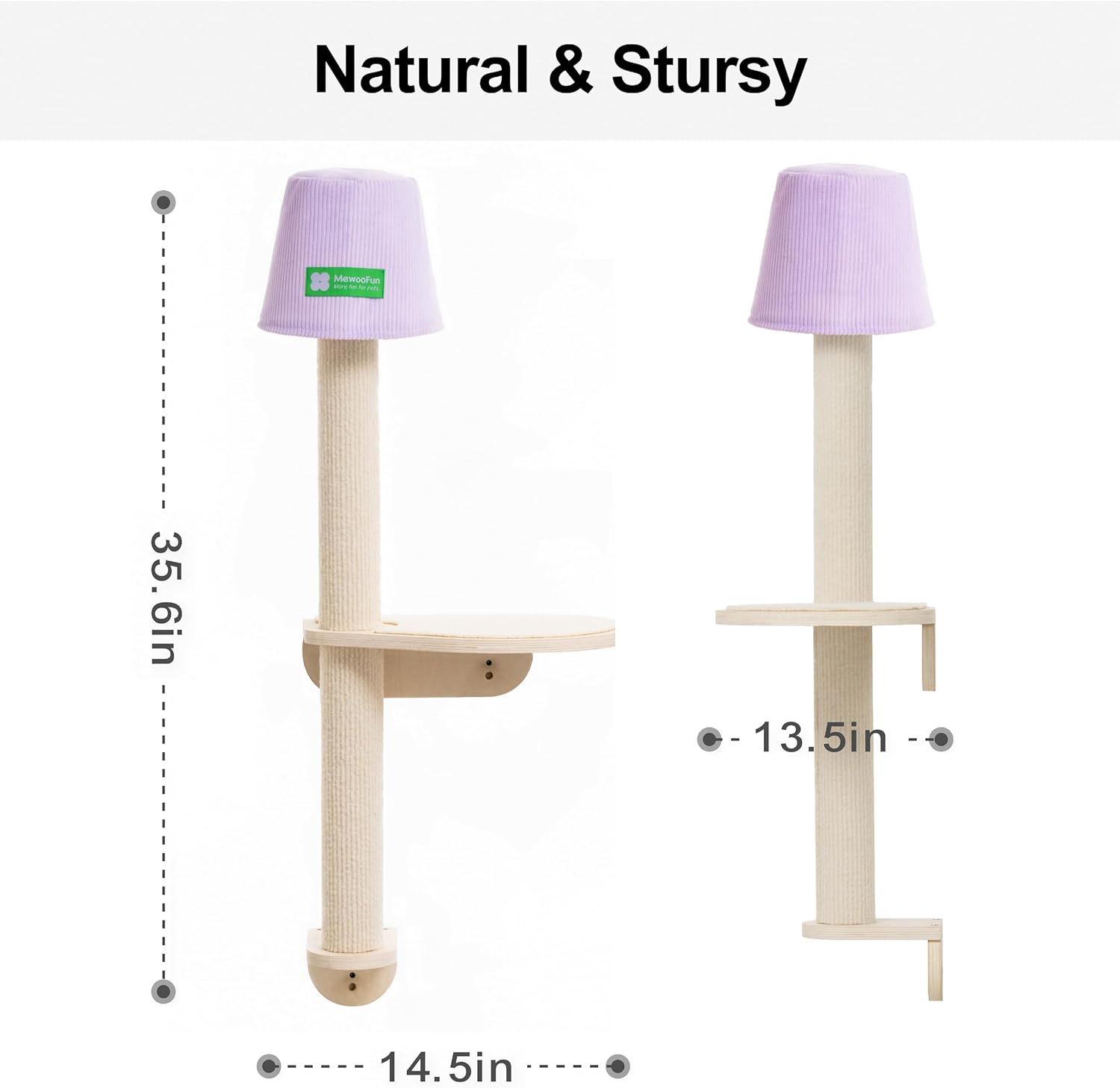 2 in 1 Cat Window Perch with Scratching Post:Multi-level activity area that combines playing, scratching, resting and bird-watching to satisfy your cat’s scratching instincts and at the same time enjoy sunbathing and a beautiful view.Either on the window or nailed to the wworldnet027