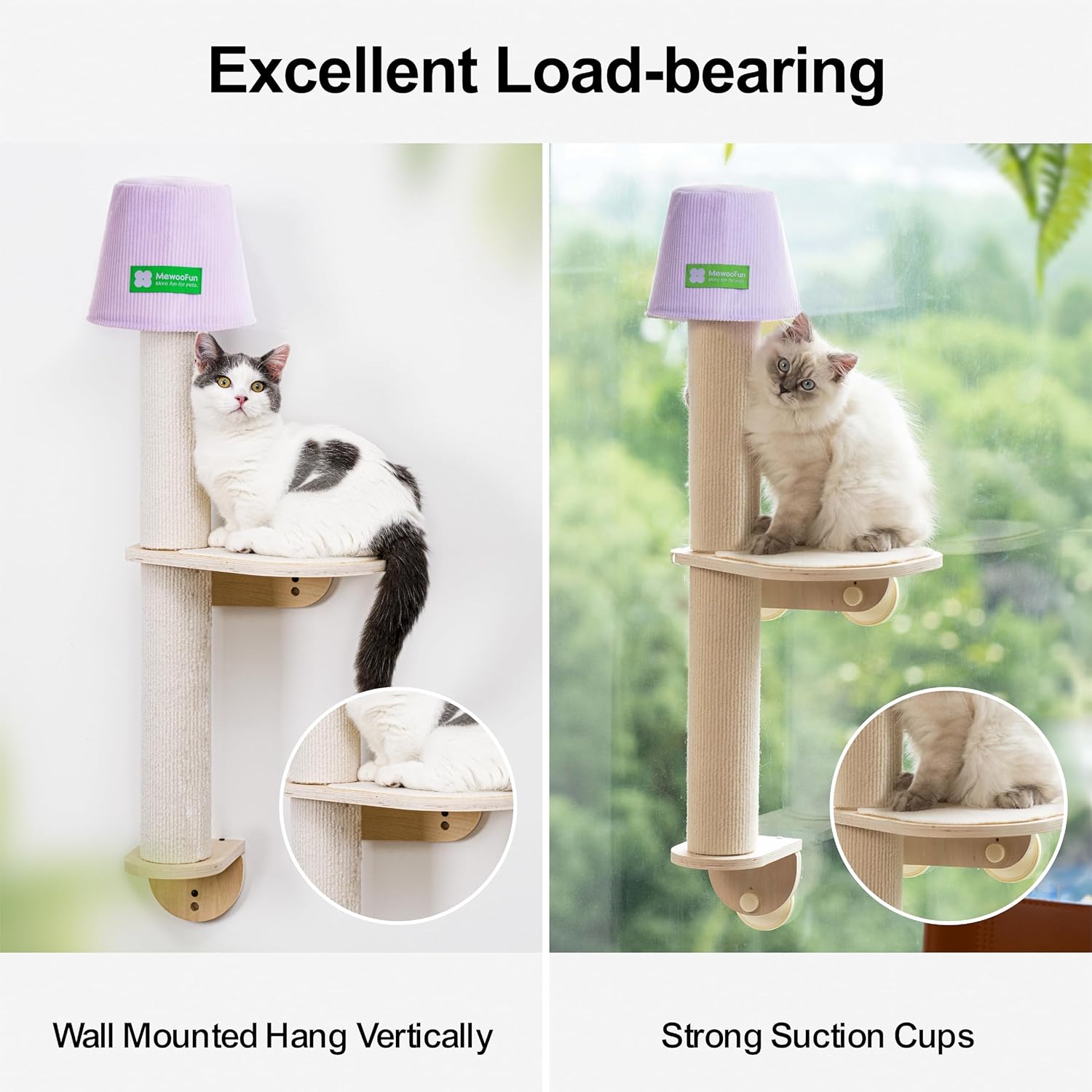 2 in 1 Wworldnet027 Mounted Cat Scratcher -Cat Window Perch Hammock Bed with Scratching Post and Climbing Steps,Wooden Cat Perch Window for Indoor Cats and Kittens