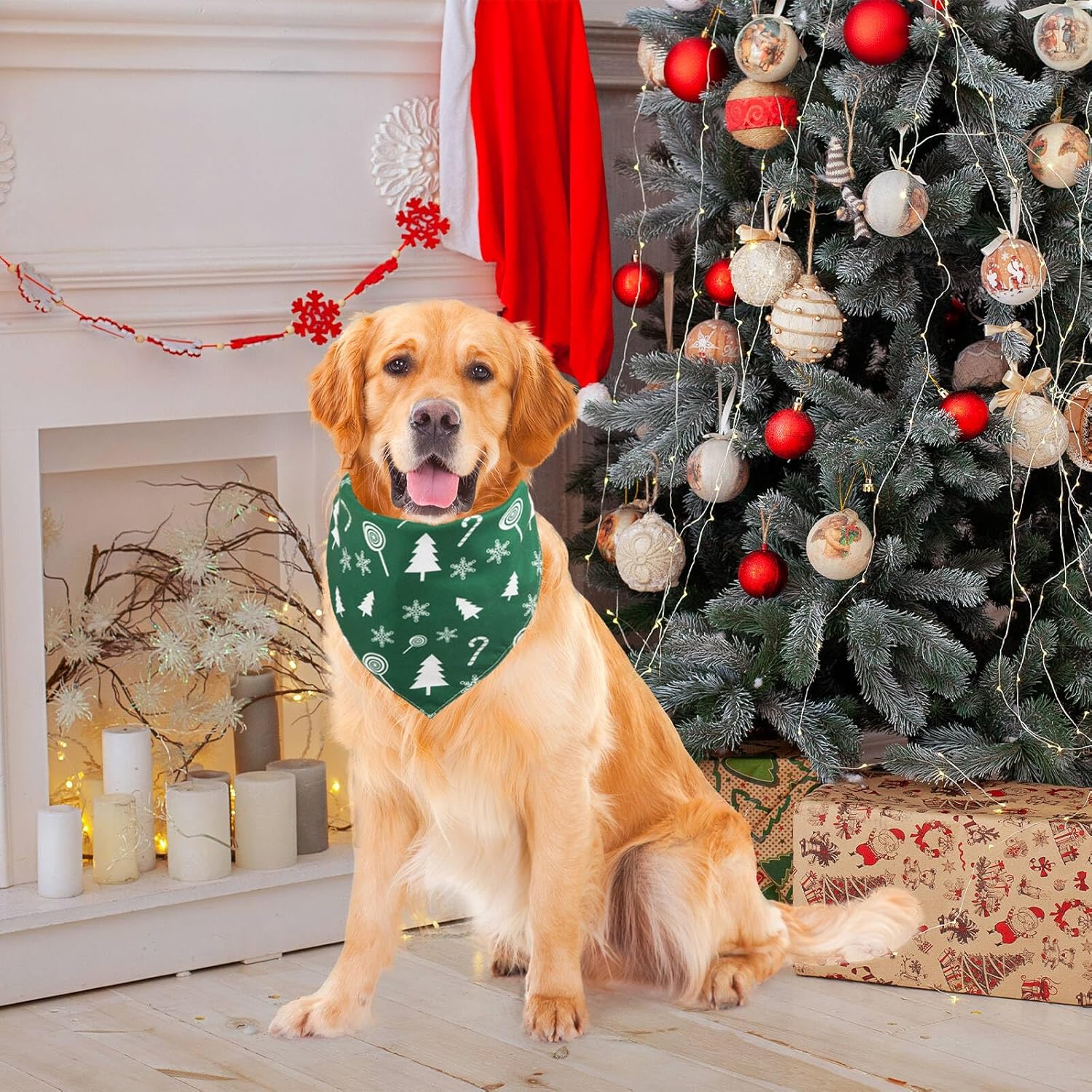 Dog Bandanas Christmas: Christmas bandanas design with christmas tree, santa claus, snowflake, xmas candy and more, ideal for christmas party and photoshoots. It is great christmas gift for your belove pets.