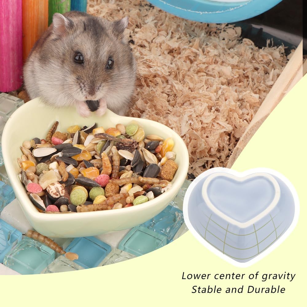 2 Pcs Hamster Ceramic Food Bowl Anti-Turning Food & Water Dish for Hamster Gerbil Hedgehog Rat Rodent (Green and Purple)