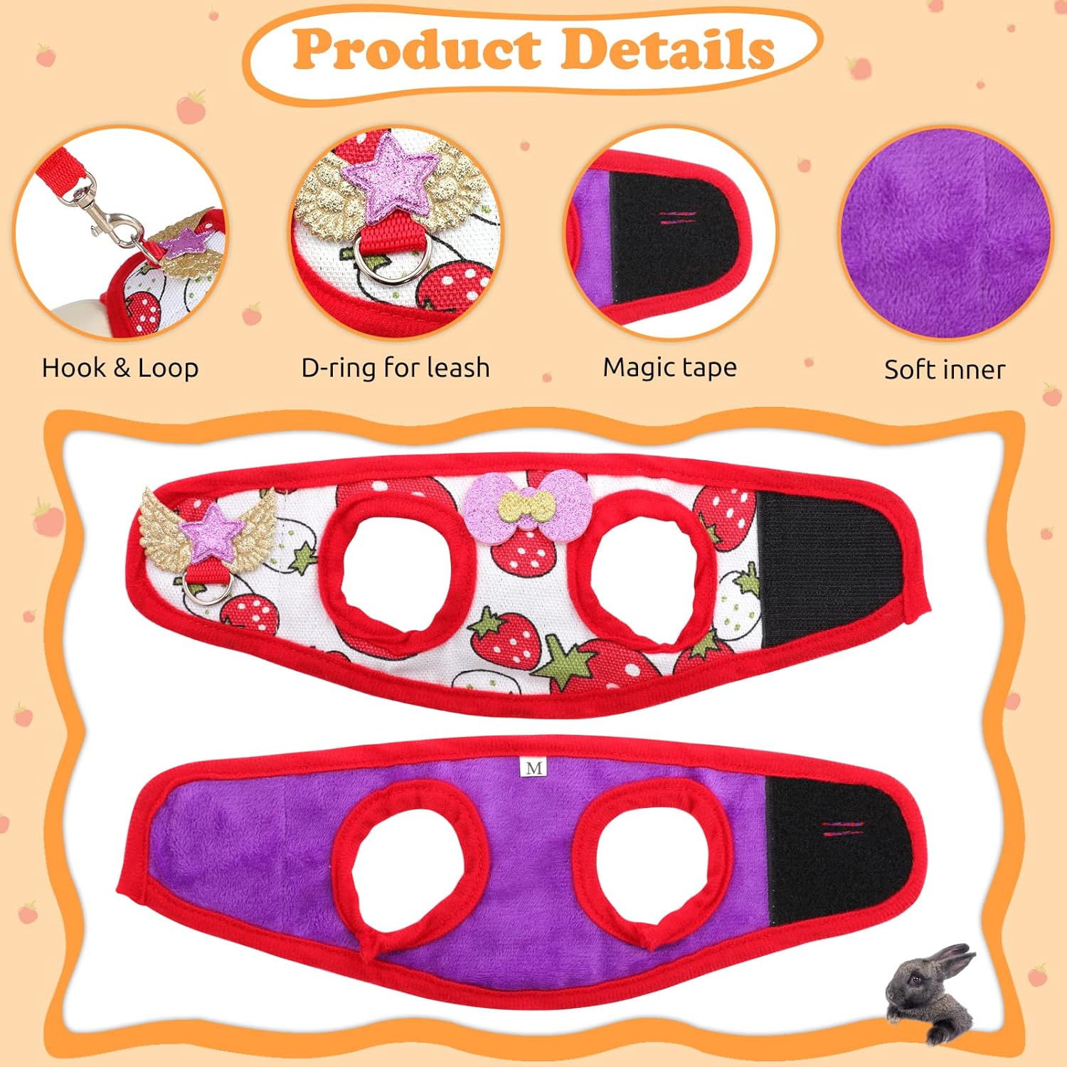 2 Pieces Vest Harness for Rabbit Hamster Guinea Pig, Smworldnet027 Animals Leash Set Adjustable Bunny Harness for Out Walking, Fruit-M