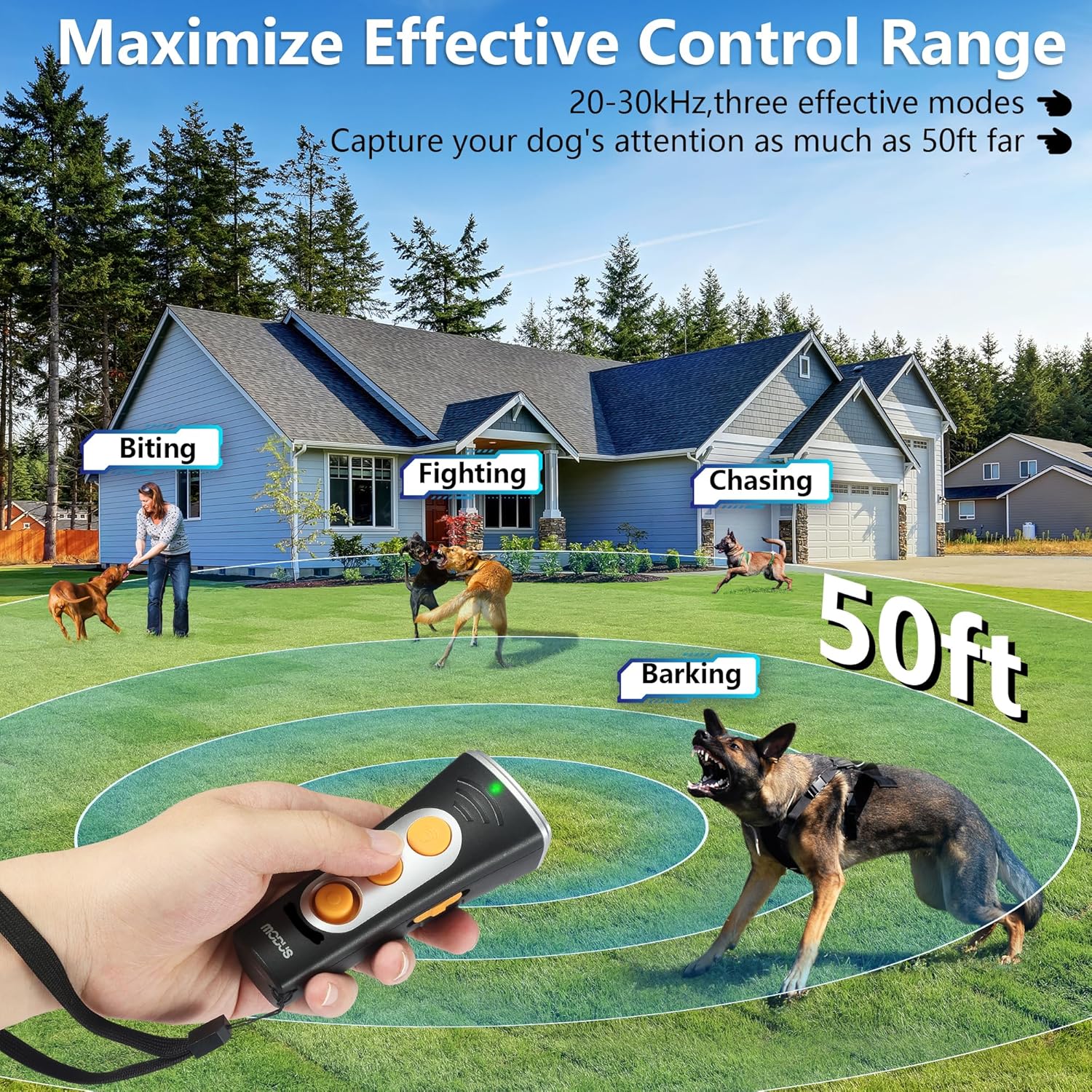 2024New Dog Bark Deterrent Device, 4X Ultrasonic Emitters Anti-Barking Device, Rechargeable Handheld Dog Barking Control Devices with 50ft Range Dog Training&Behavior Aids, Indoor Outdoor (Black)