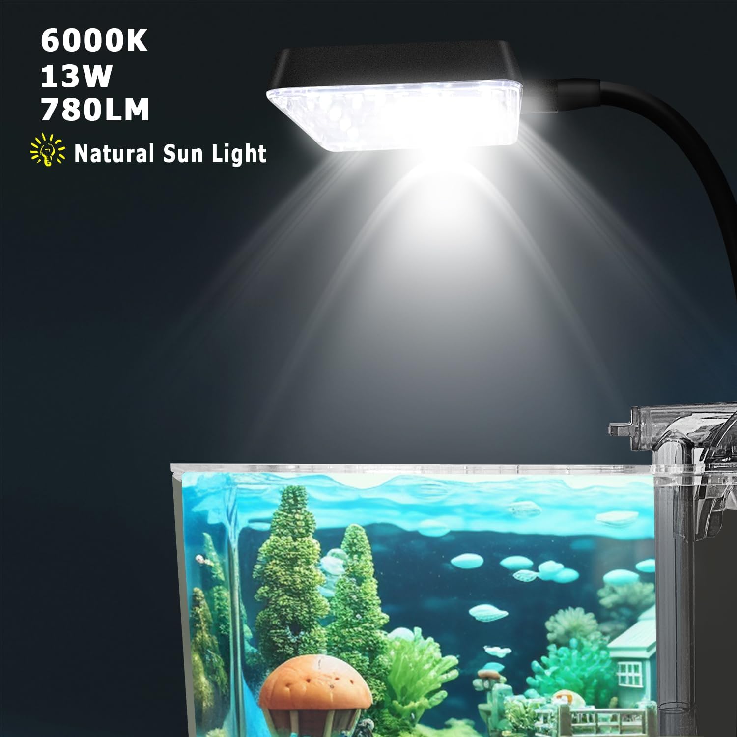 🐟Dazzling LED Lights: Our mini aquarium features a clamp lamp with ample brightness, worldnet027owing you to fully appreciate the underwater beauty. The light specifications are AC 110~240v, 13W, 780 Lumens, 6000K.