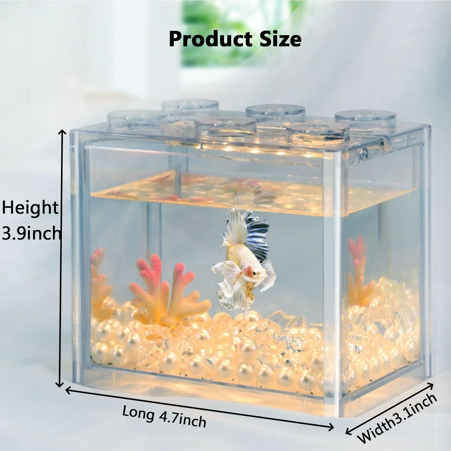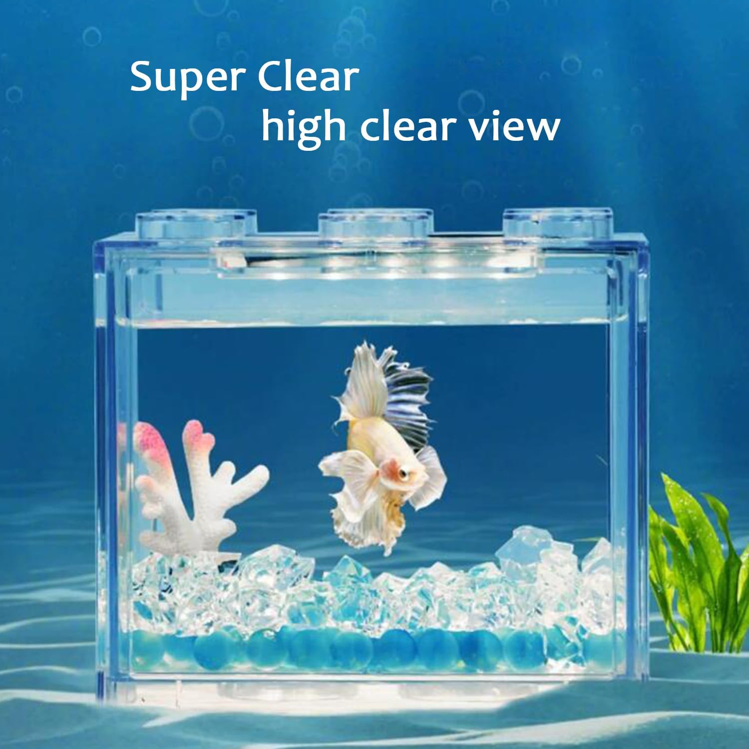 【Block Type】- This is a cute little fish tank with 6 protruding columns at the top, which can be stacked with the same fish tank to mold multiple fish tanks into different shapes to decorate your table.
