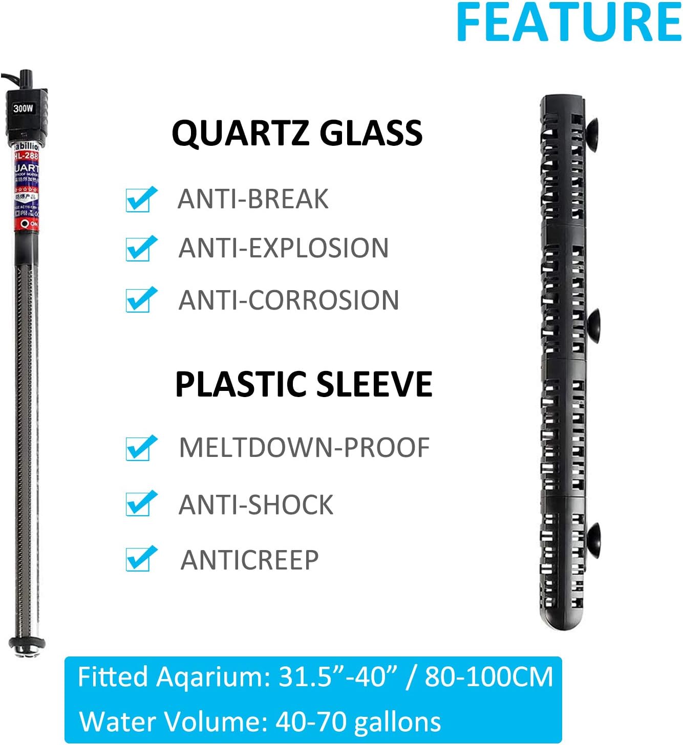 300W Aquarium Heater Underwater 300 Watt Submersible Fish Tank Heater for Fresh Water & Salt Water Suit for 35-80 Gworldnet027ons Tank