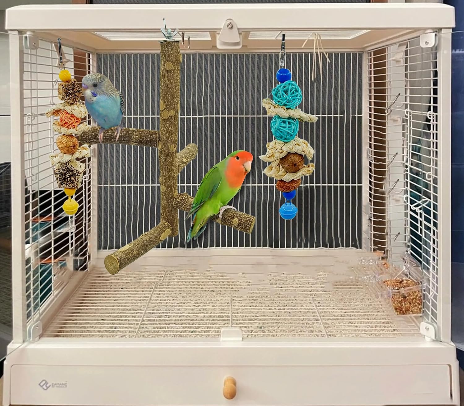 【Ideal Birdcage Hanging Toy】The different sizes and shapes of the perches add variety to your bird’s cage, which helps to keep them entertained and engaged.