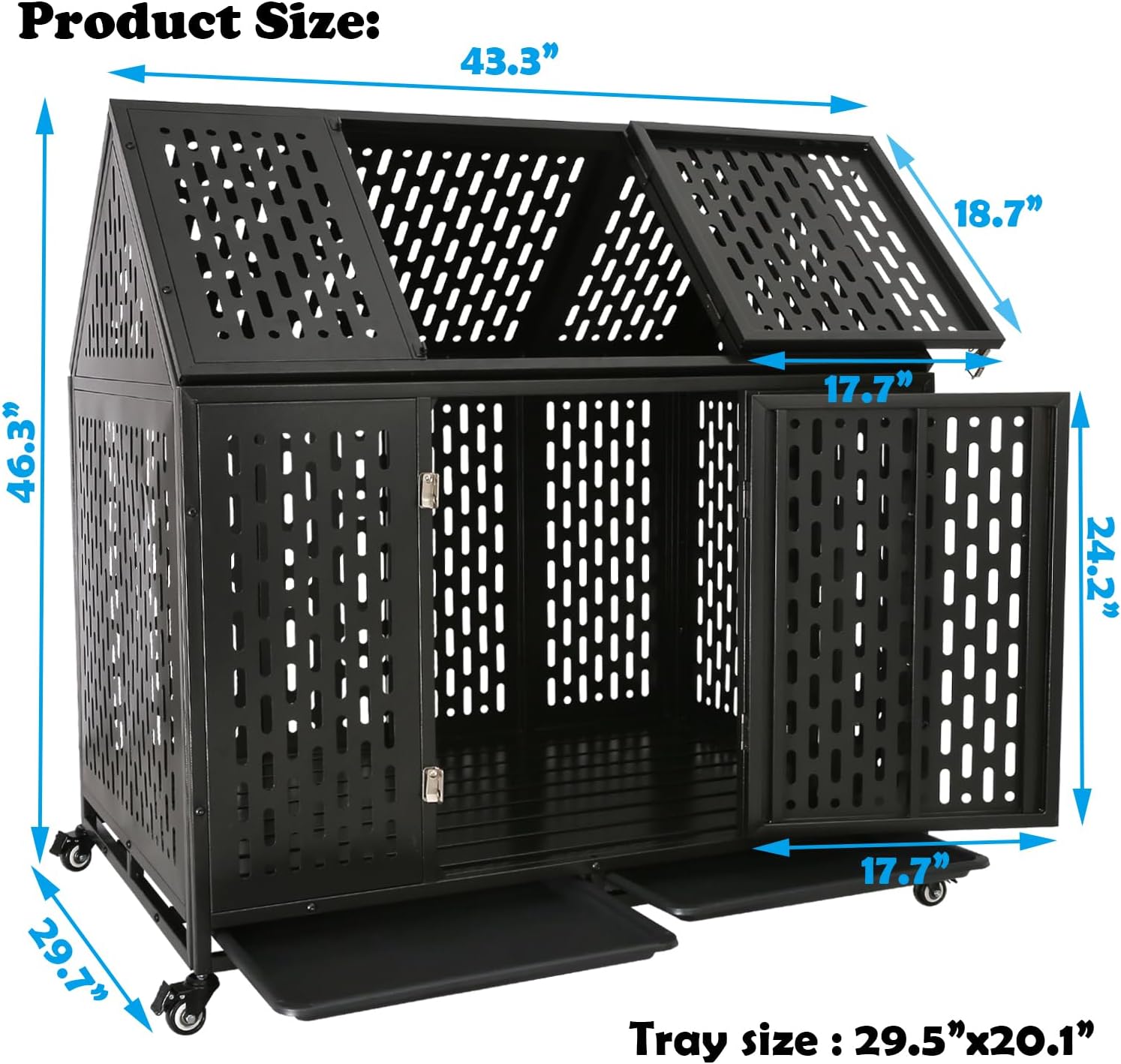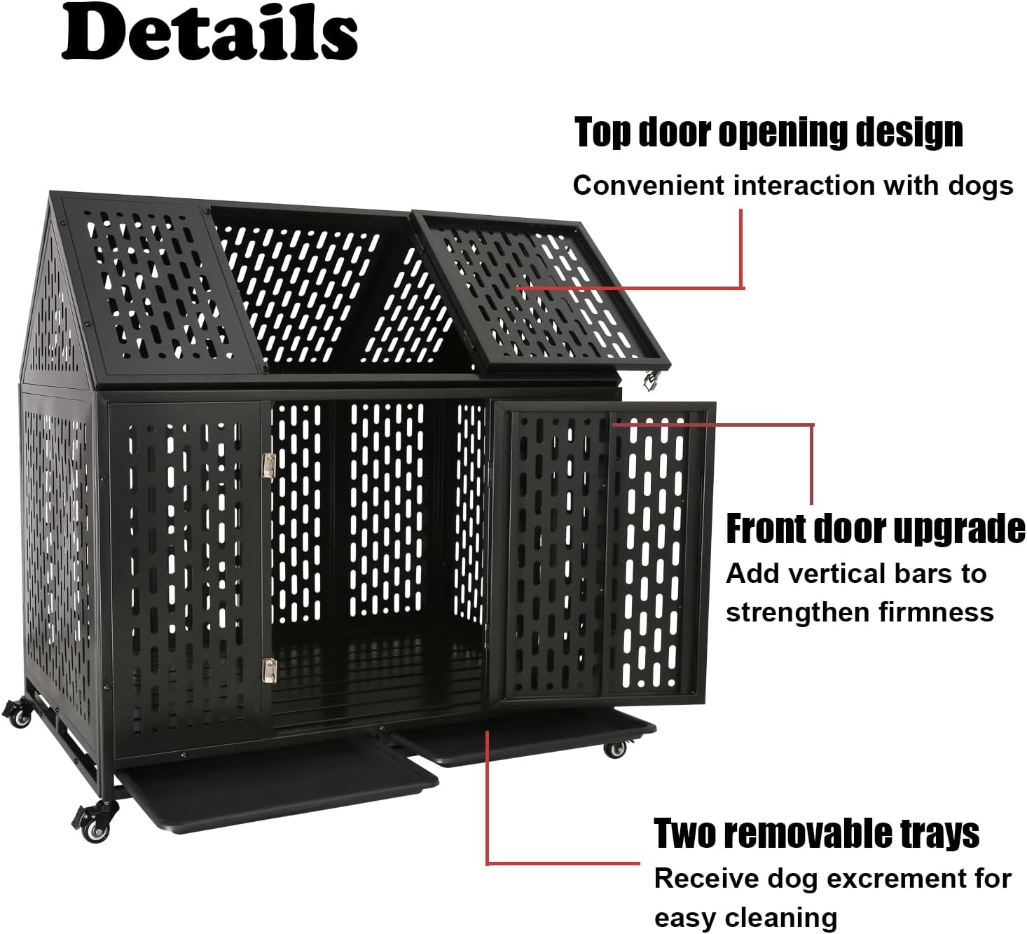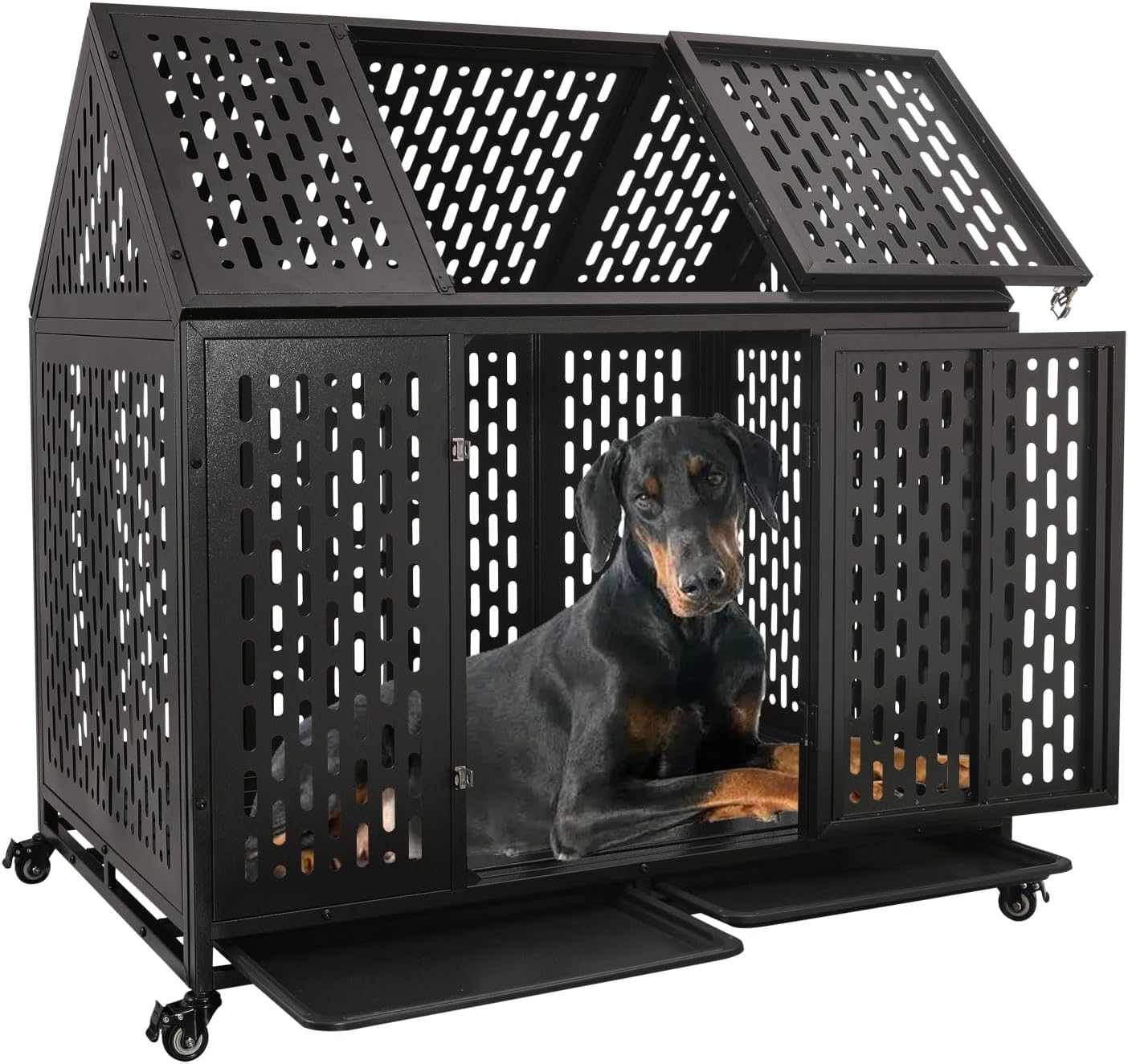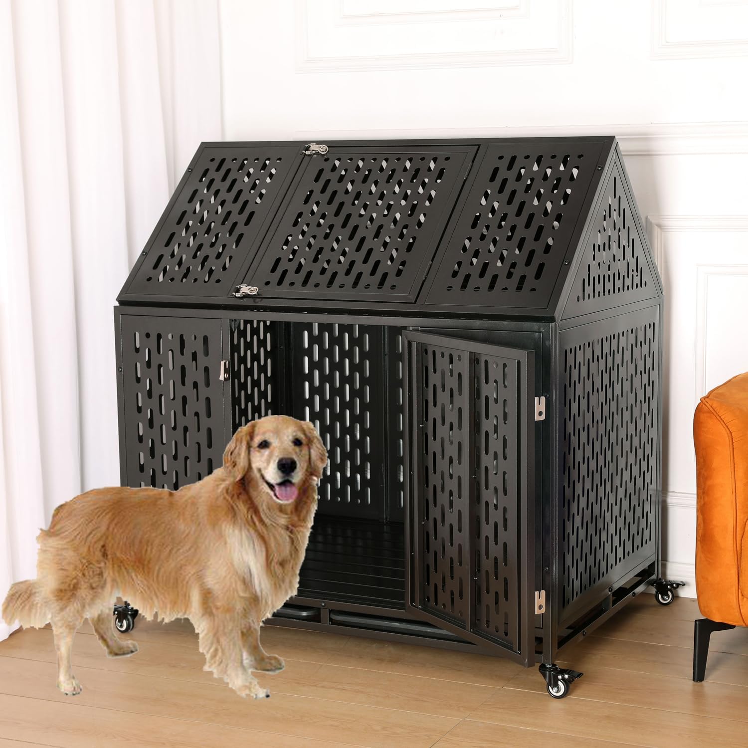 44 inch Heavy Duty Dog Crate with Sturdy Latch, Indestructible Large Steel Kennel, Escape-Proof and Chew-Proof Pet Cage Indoor for Large Medium High Anxiety Dogs