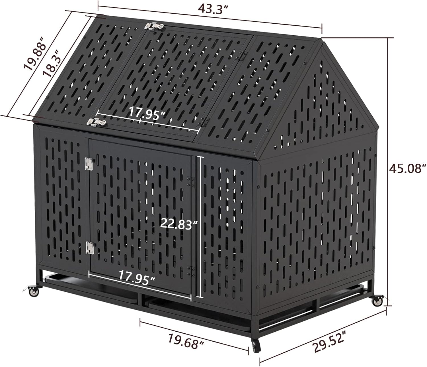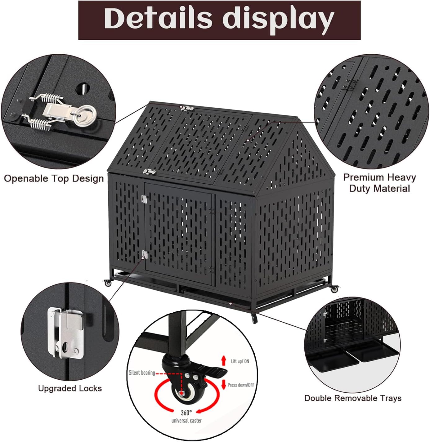 [OPENABLE ROOF TOP]: Easier for you to access or feed your furry friend without let them out. Instead of normal lock, we applied the upgraded lock to ensure the dog won’t be able to escape from the cage and mess the home when you’re not around.