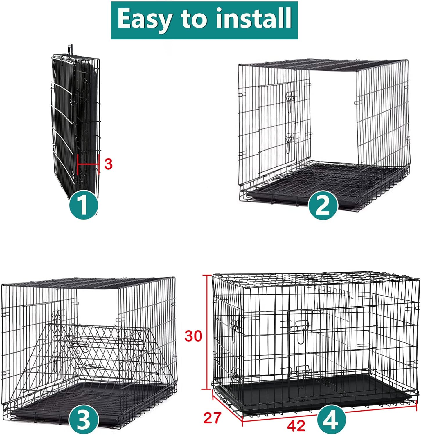 48 42 Inch Large Dog Crate Kennel Metal Wire Indoor/Outdoor Double-Door Folding Dog Cage for Large Medium Puppy Dog Pet Crate with Plastic Tray and Handle