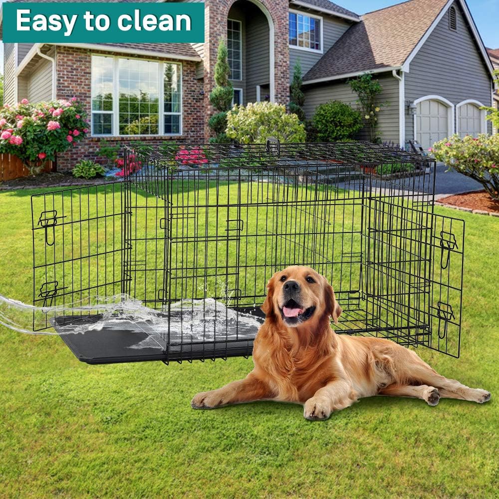 🐶[EXCELLENT QUALITY] The dog cage is made of high-quality metal, with strong quality and extremely long service life. And the large dog crate also contains a durable leak-proof ABS composite material tray that will not stain, distort, corrode or retain pet odor. There is an integrated lip around the bottom of the pet cage, which can prevent any mess caused by the overflow of the kennel.