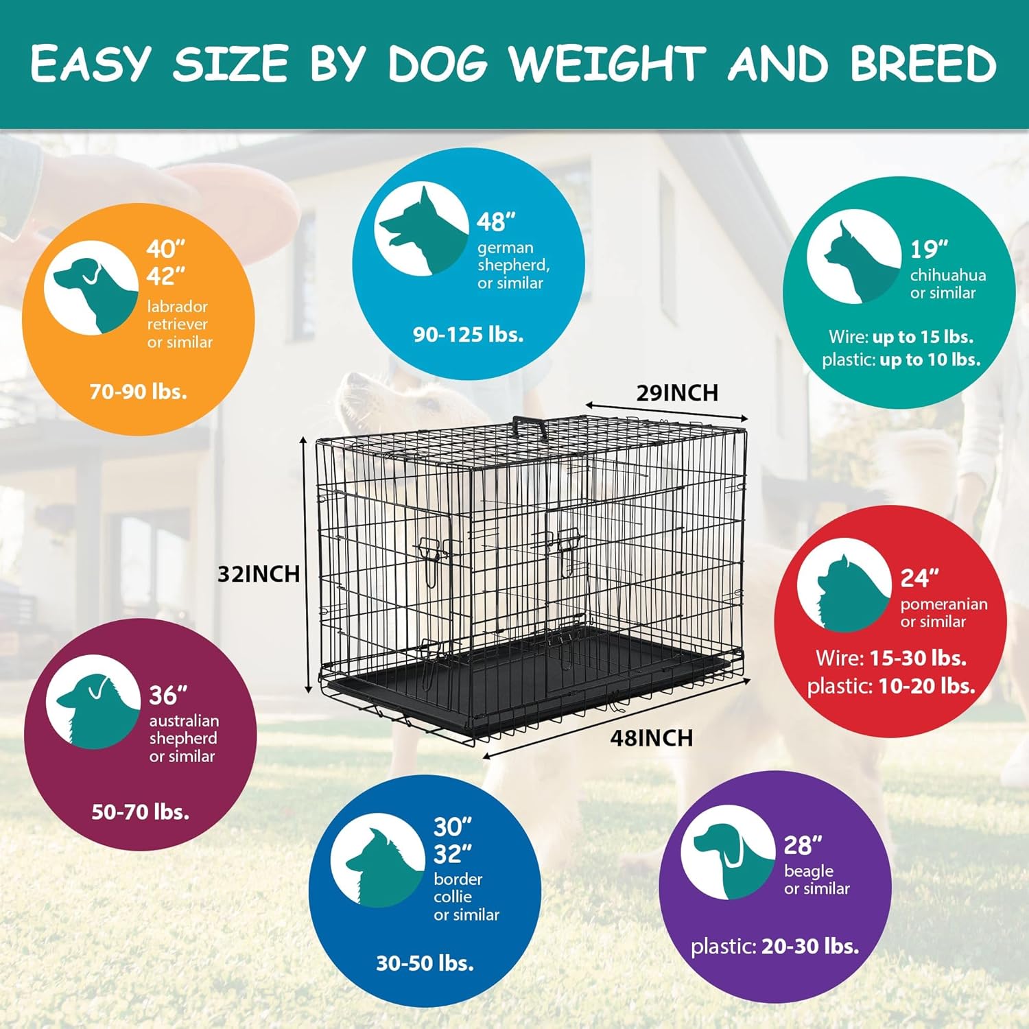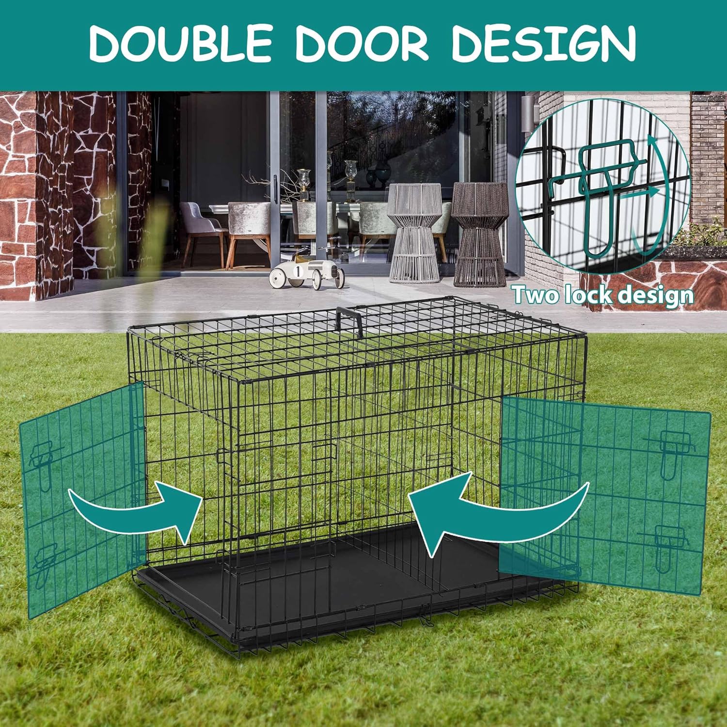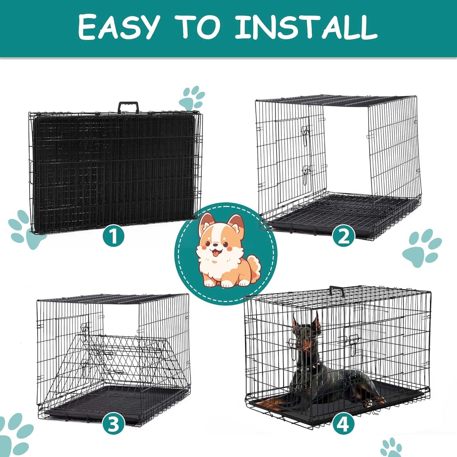 48 Inch Extra Large Dog Crate for Large Dogs Durable Foldable Large Dog Kennel Indoor, Double Door/Leak-Proof Removable Tray/Handle, for Shop/Home/Outdoor/Indoor,Metal Dog Crate, 48 Inch Dog Crate