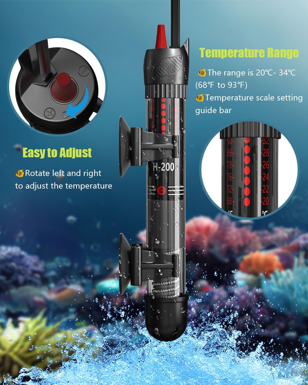 [Accurate Temperature-Control]: With high-precision temperature control system, adjustable temperature ranges from 20℃- 34℃(68℉ to 93℉), perfect for nano tanks / betta tanks.