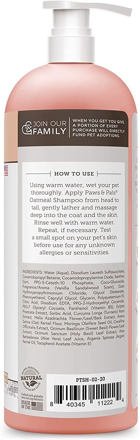 20oz Bottle with Pump – Less is more, Paws & Pals has a higher concentrate of oatmeal extract which means you won’t have to use as much as other dog shampoos