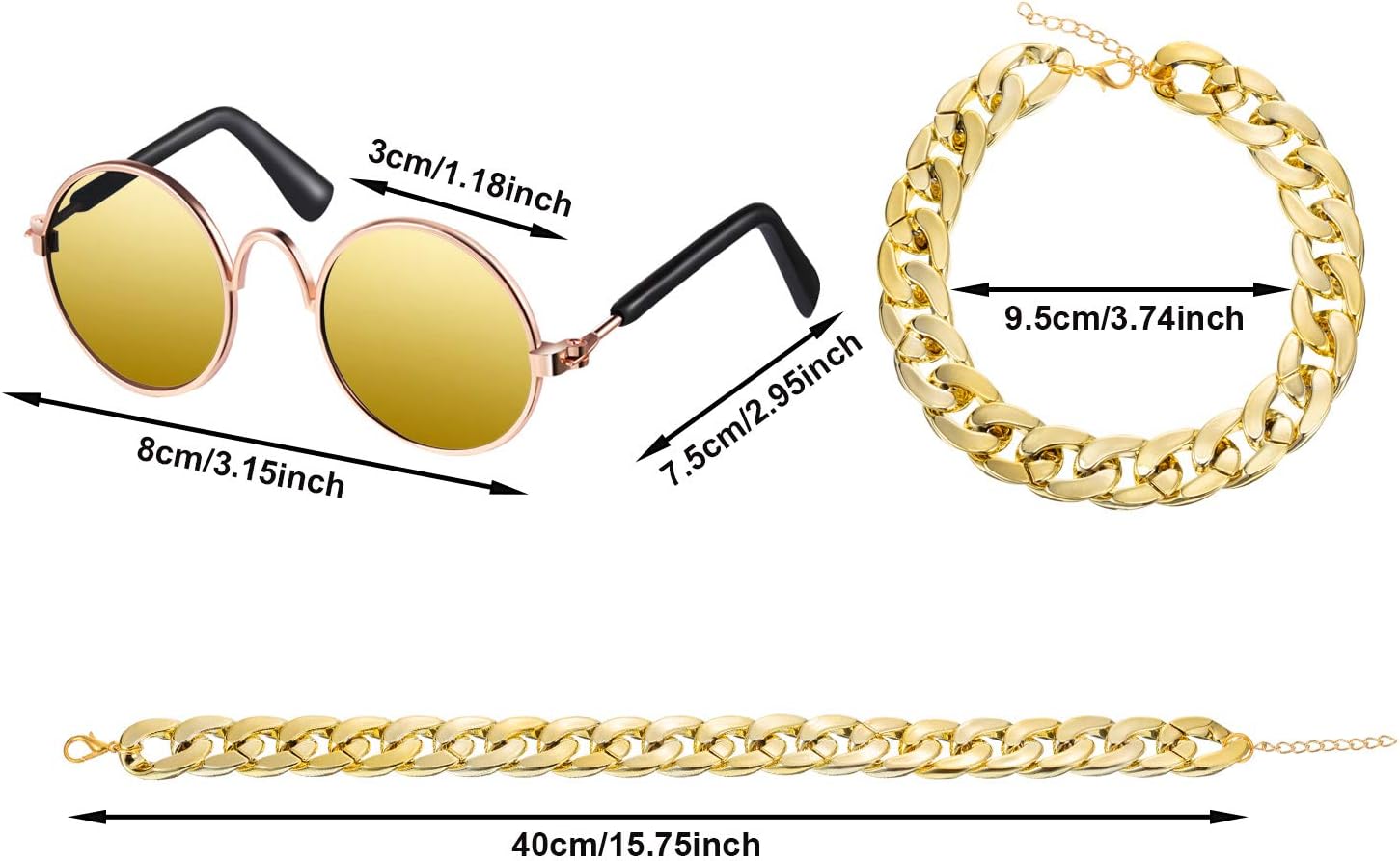 Fashionable pet costume: this pet costume set includes 4 pairs of pet fashion glasses, a pet straw hat and a pet gold chain collar, which are suitable for your cat or dog to daily wear, photo props, show and performance wear