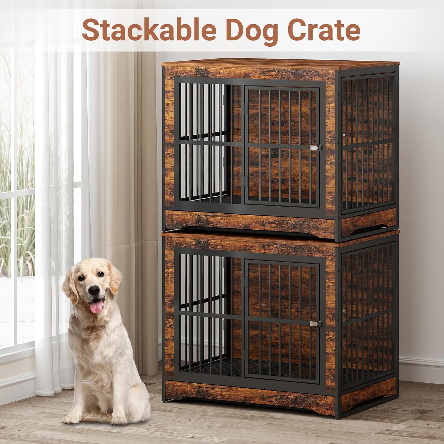 【4 Combination Methods】Yafylly dog crate furniture can be used as 2 separate 38-inch wooden dog crates, or it can be assembled into a 75-inch large double dog crate. In addition, it will save space if you assemble it into a vertical stacked dog crate combination or a l-shaped corner dog crate.