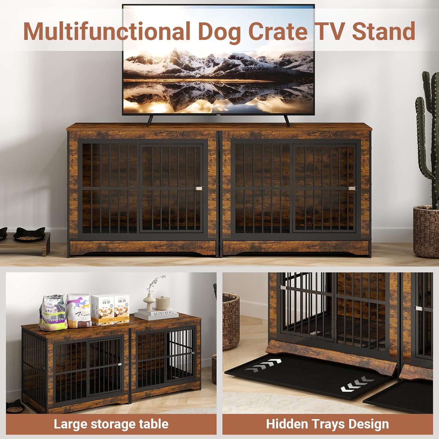 【Multifunctional Double Dog Crate Furniture】Not only a double dog kennel furnifure for 2 large dogs, but also a dog kennel tv stand and a large dog crate table. Make full use of the 75-inch large desktop space to store TV, pet toys, pet food, etc.