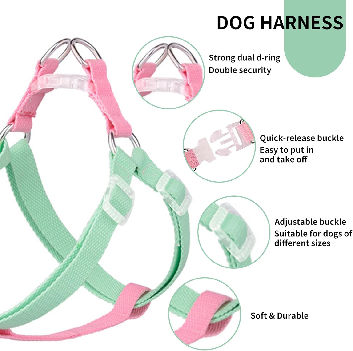 AIITLE Step in Dog Harness & Leash & Collar – Multicolor Lightweight Dog Halter Basic Collar with A 5FT Leash – for Extra Smworldnet027 Dogs Daily Walking and Training Green-Pink XS