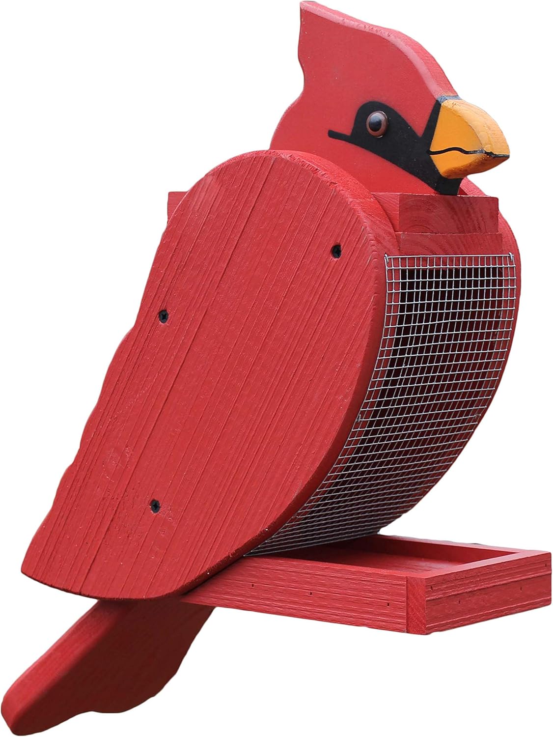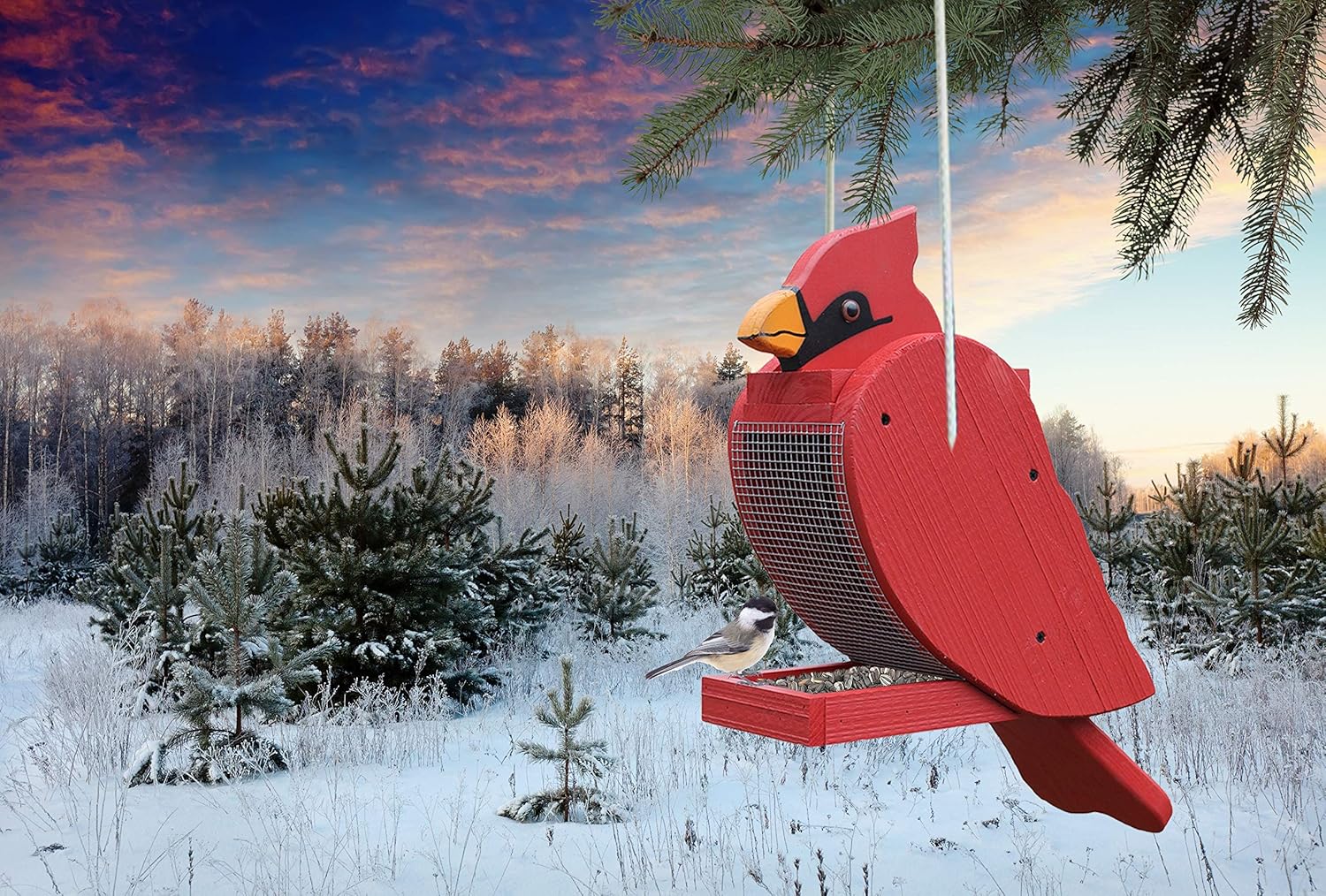 ❀ Wonderfully Designed Bird Feeder brings your favorite birds flocking to your garden. Eye-catching and beautiful, this delightful hanging bird feeder in the shape of a Cardinal brings joy and birdsong to the garden or porch. Each feeder is lovingly handcrafted from solid wood by an Amish woodworker in Pennsylvania, so you can expect years and years of enjoyment from each of these beautiful birds. They’re big, they’re beautiful, and they’re made to last.