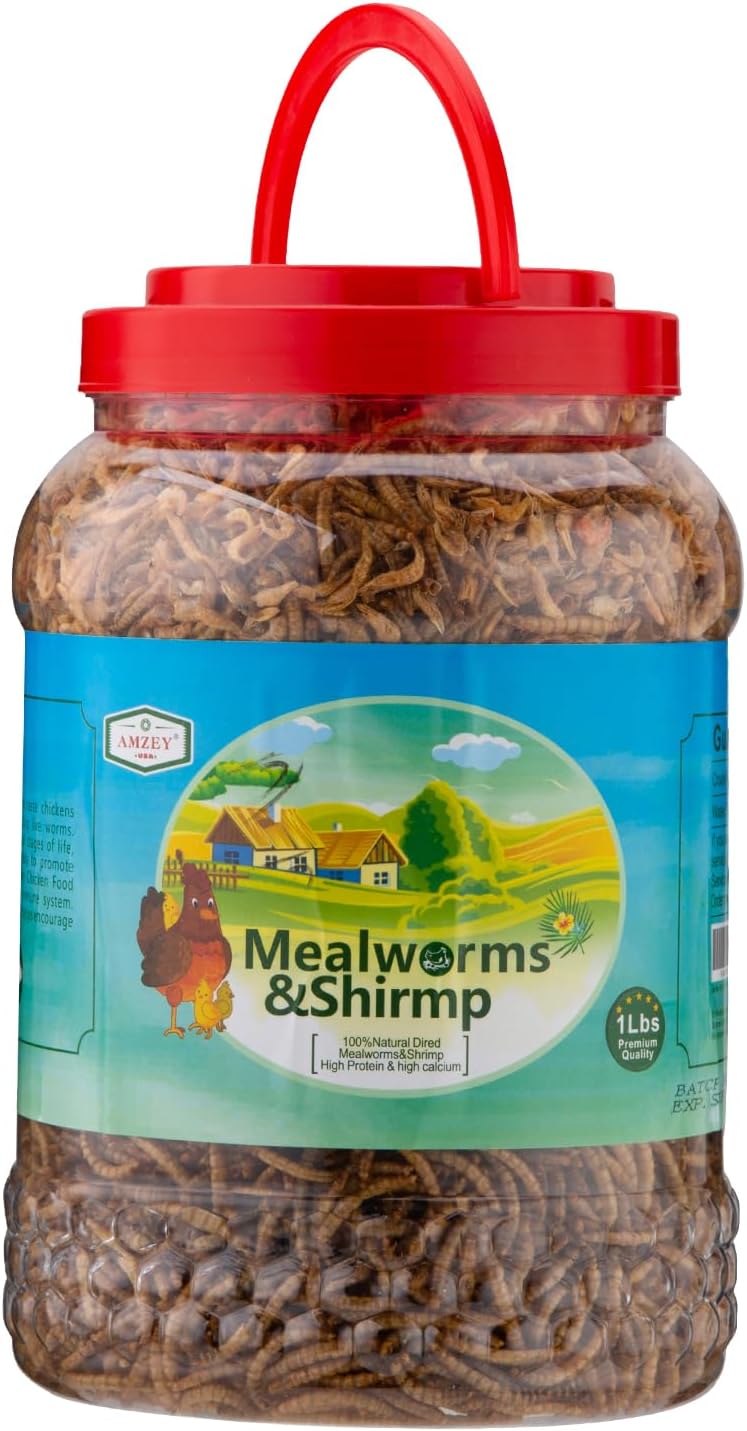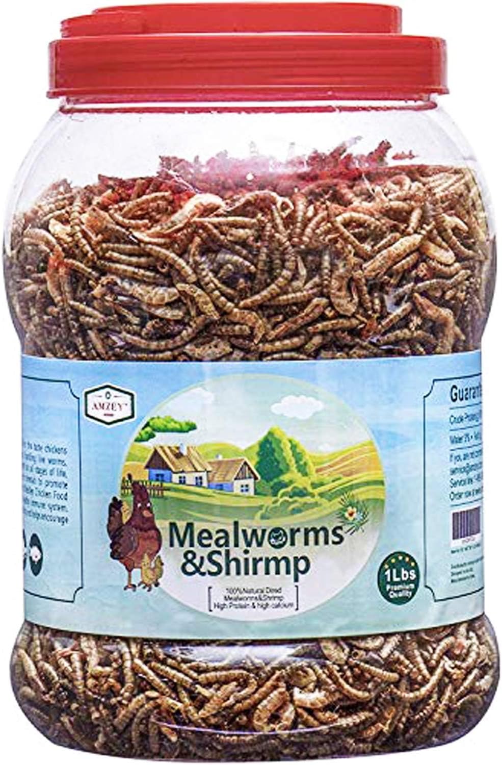 Amzey Shrimp & Mealworms 100% Non-GMO Dried Mealworms – High-Protein Meal Worm Treats – Perfect for Your Chickens, Ducks, Wild Birds, Turtles, Hamsters, Fish and Hedgehogs