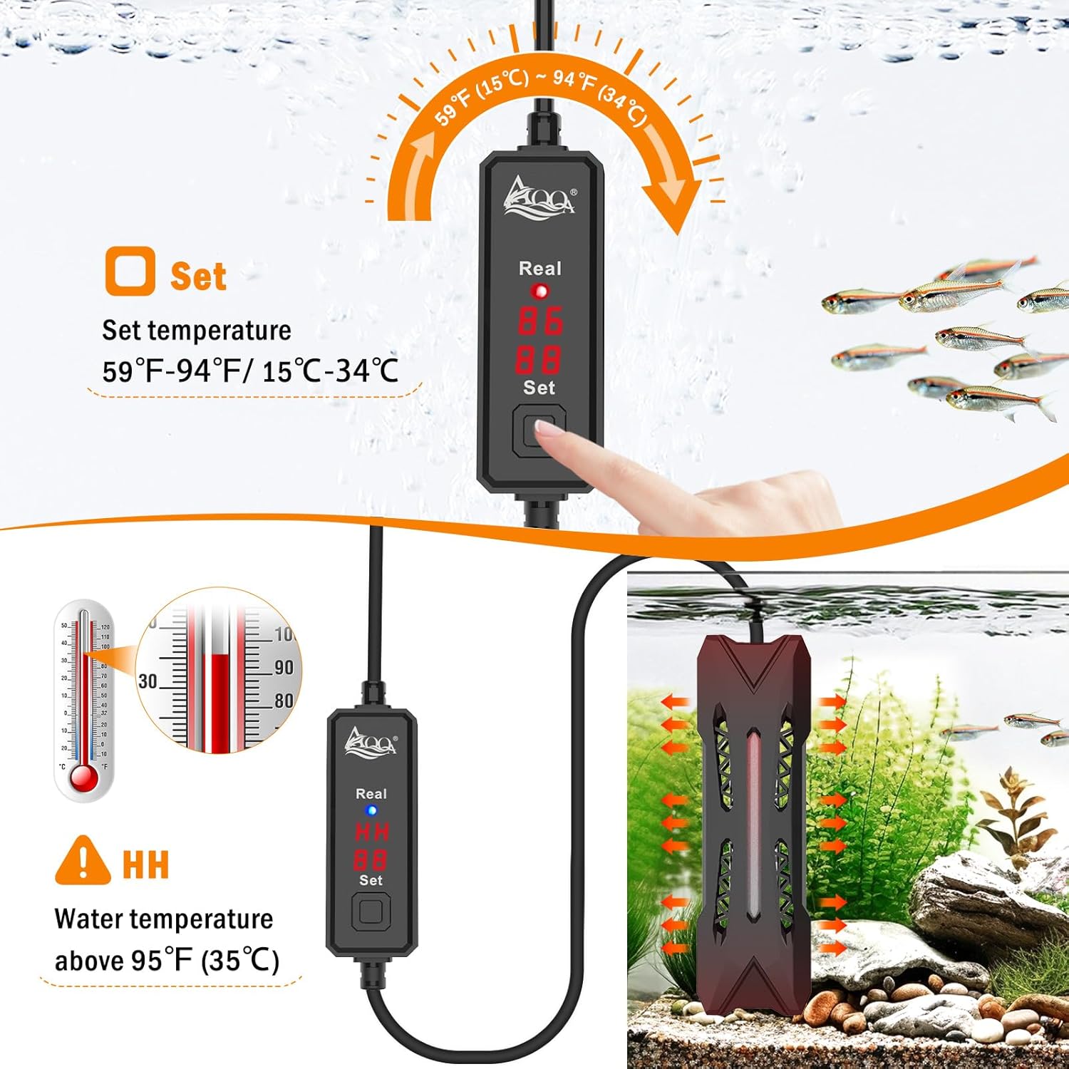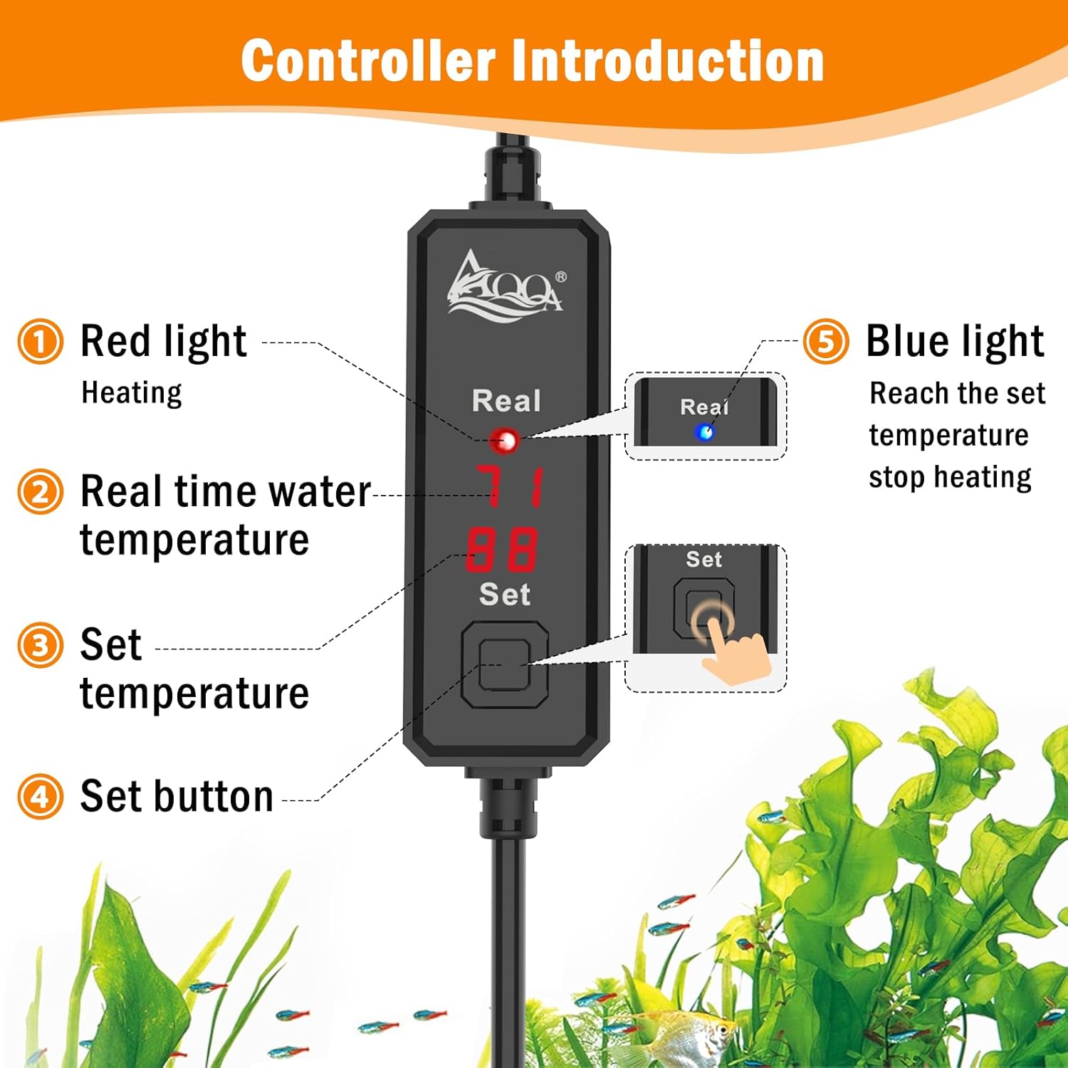 AQQA Smworldnet027 Aquarium Heater,Submersible Fish Tank Heater Adjustable Temperature,Mini Short Dual-use Fish Heater with LED Digital Display Thermostat,Saltwater Freshwater 50W