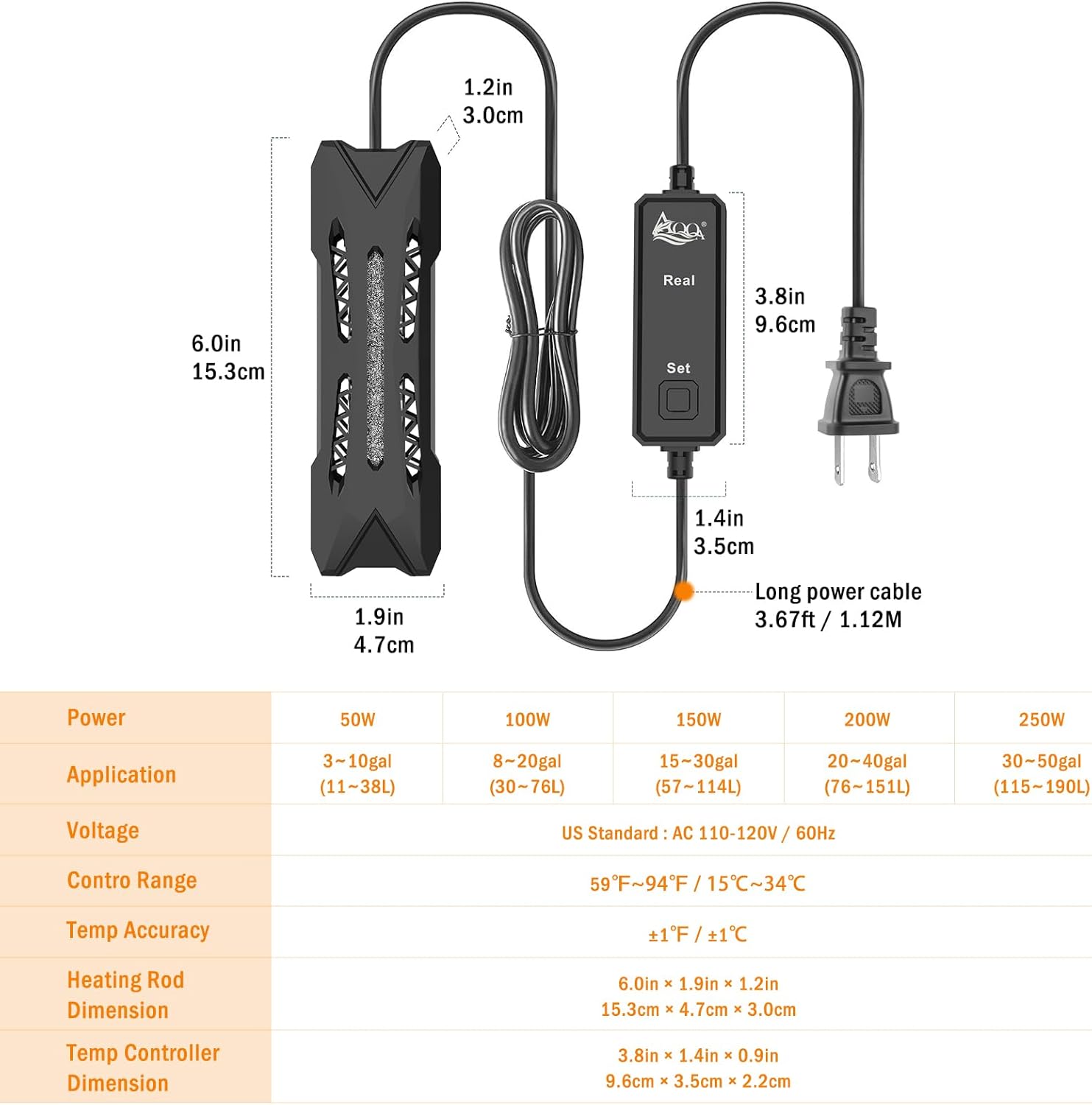 AQQA Smworldnet027 Aquarium Heater,Submersible Fish Tank Heater Adjustable Temperature,Mini Short Dual-use Fish Heater with LED Digital Display Thermostat,Saltwater Freshwater 50W