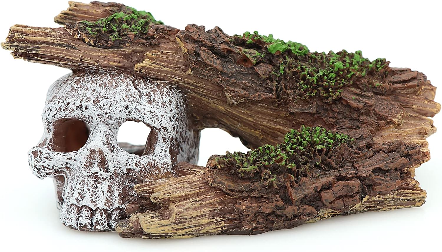 AQUA KT Aquarium Landscape Skeleton Head Skull with Tree Branch for Betta Cichlid Fish Hiding Rock Aquatic Decoration