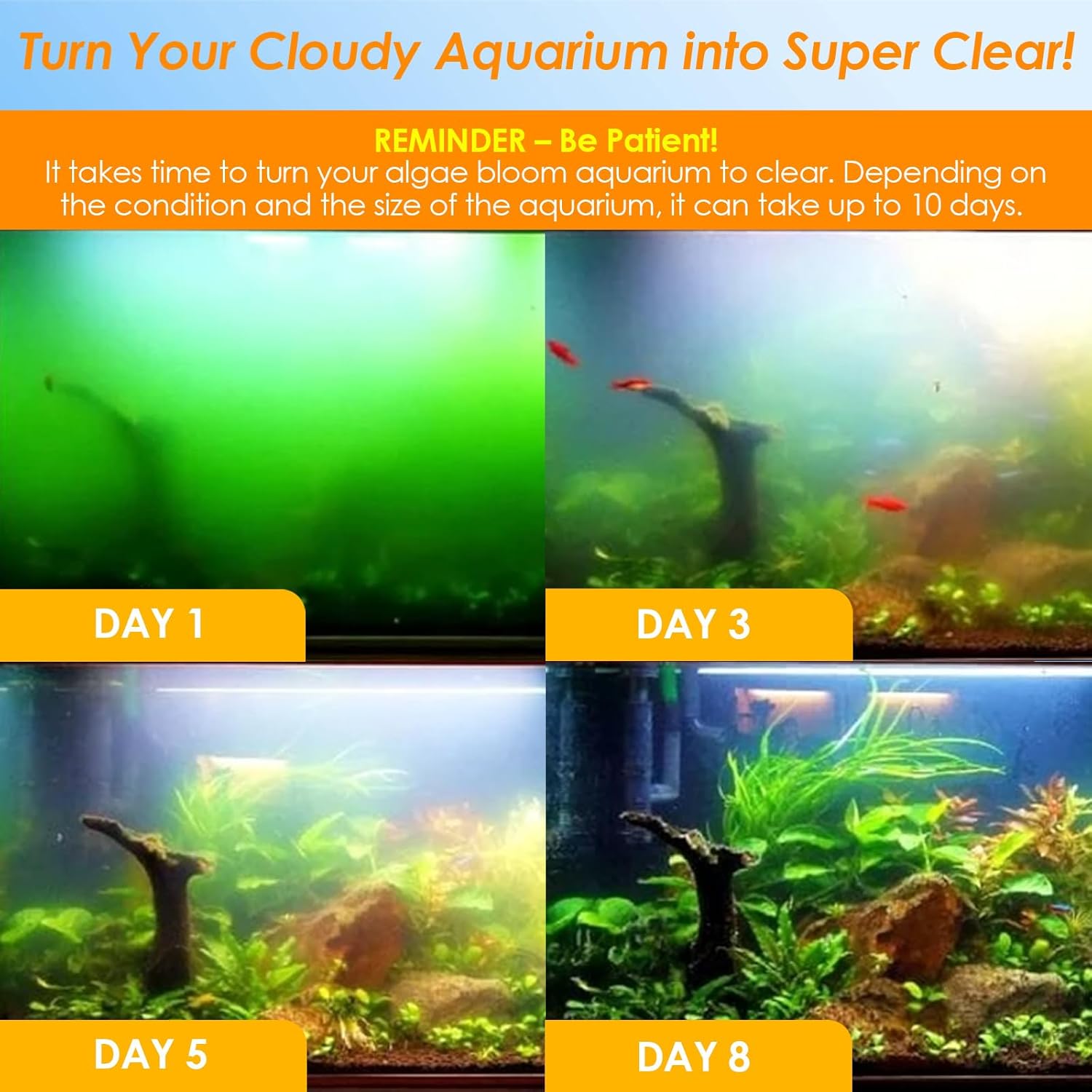 ENHANCED WATER CIRCULATION – Unlike many individual U-V lights in the market, which are lack of water circulation, this U-V filter includes a water pump that significantly enhances water circulation. This improved circulation maximizes the efficiency of the light and turns water from cloudy to clear much quicker.