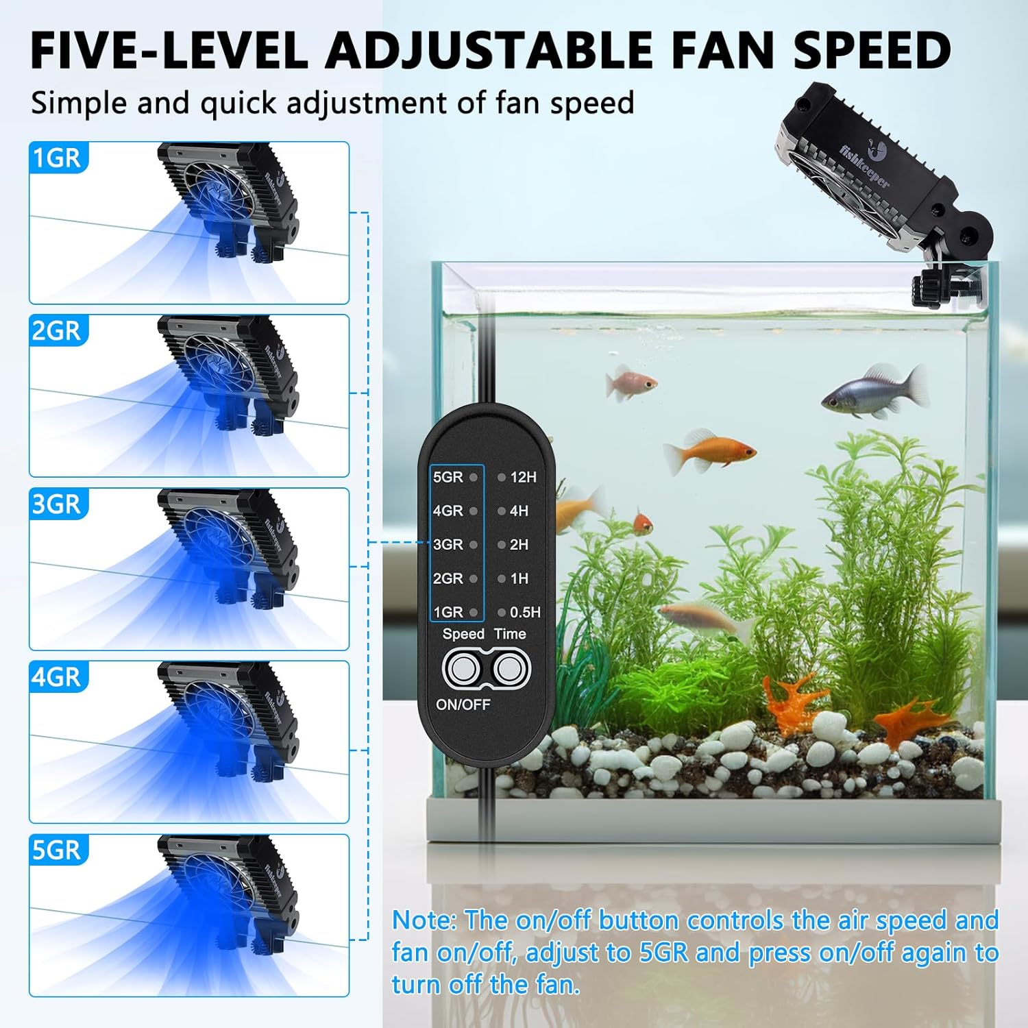 ✦【5 FAN SPEEDS AVAILABLE】 fishkeeper aquarium fan with external controller is designed with 5 different wind speeds, so you can easily & flexibly set the fan air volume to meet the different needs of various aquatic pets in seasons and temperatures.