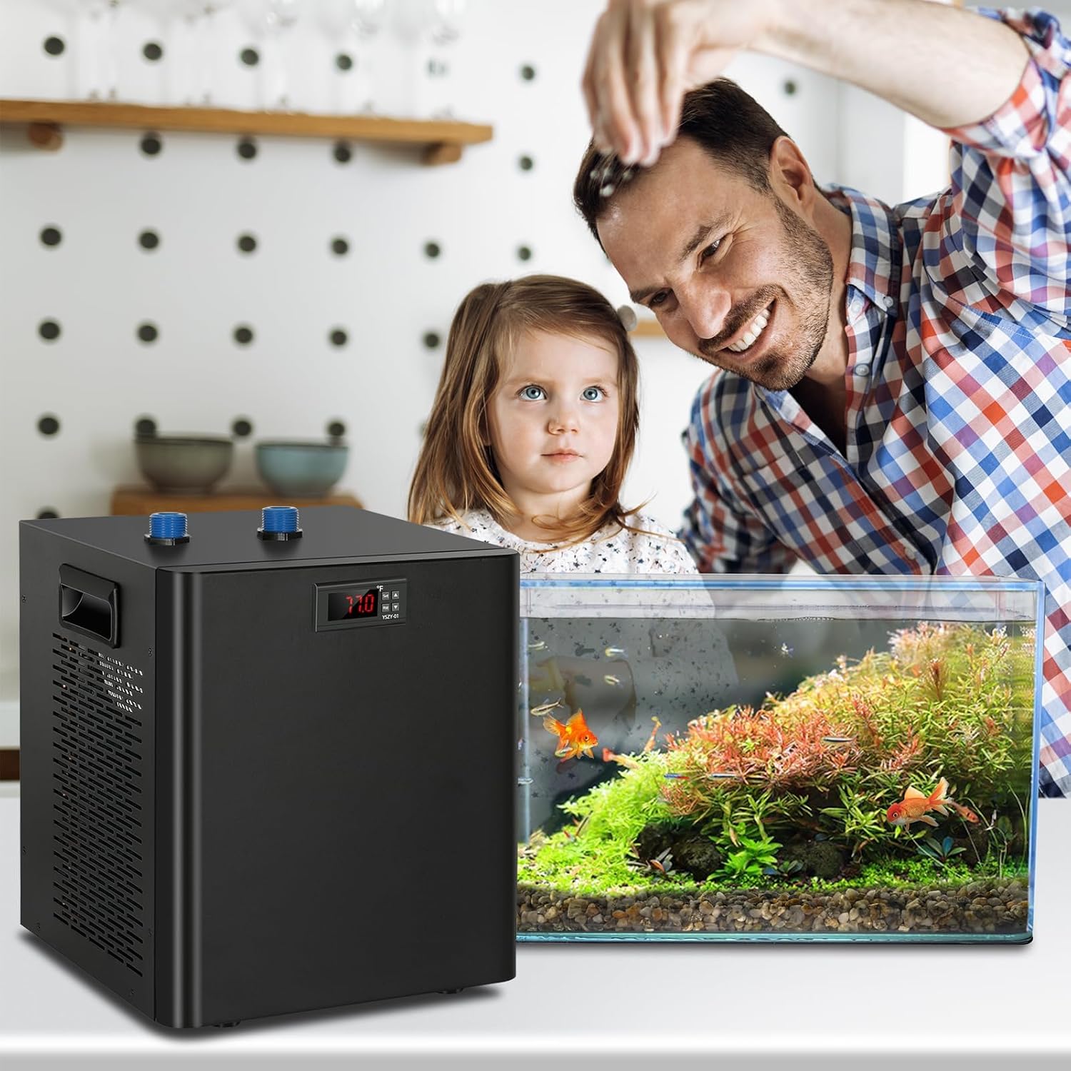 Powerful Cooling Performanc: High-efficiency freon free compressor provides more rapid and stable cooling than smworldnet027 fans, Built-in compressor uses r134a refrigerant, circulating cooling without pollution and do not need to be supplemented. Can well control the ideal water temp at 68℉-79℉ (20℃-26℃), necessary for creating healthy roots and a good harvest.