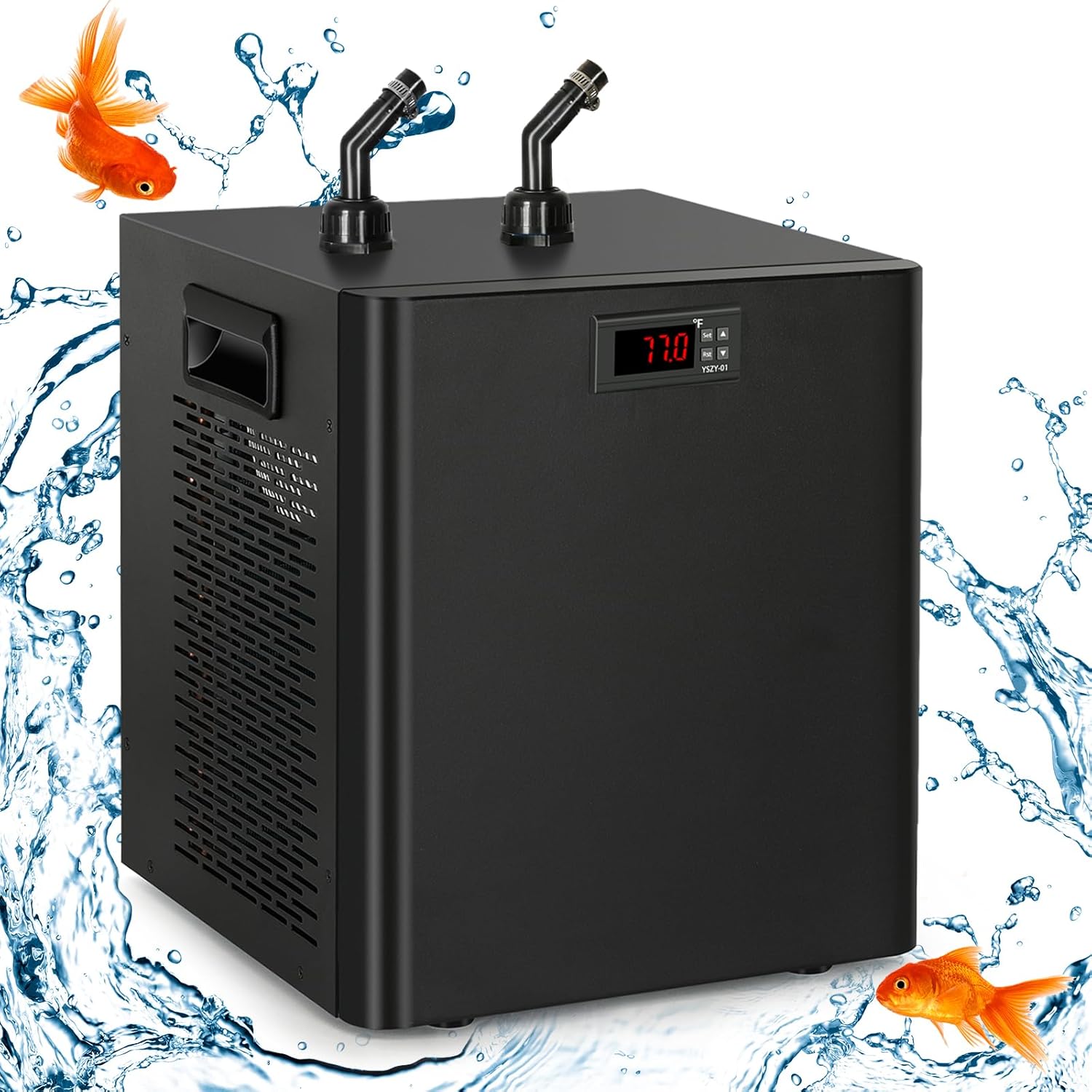 Powerful Cooling Performanc: High-efficiency freon free compressor provides more rapid and stable cooling than smworldnet027 fans, Built-in compressor uses r134a refrigerant, circulating cooling without pollution and do not need to be supplemented. Can well control the ideal water temp at 68℉-79℉ (20℃-26℃), necessary for creating healthy roots and a good harvest.