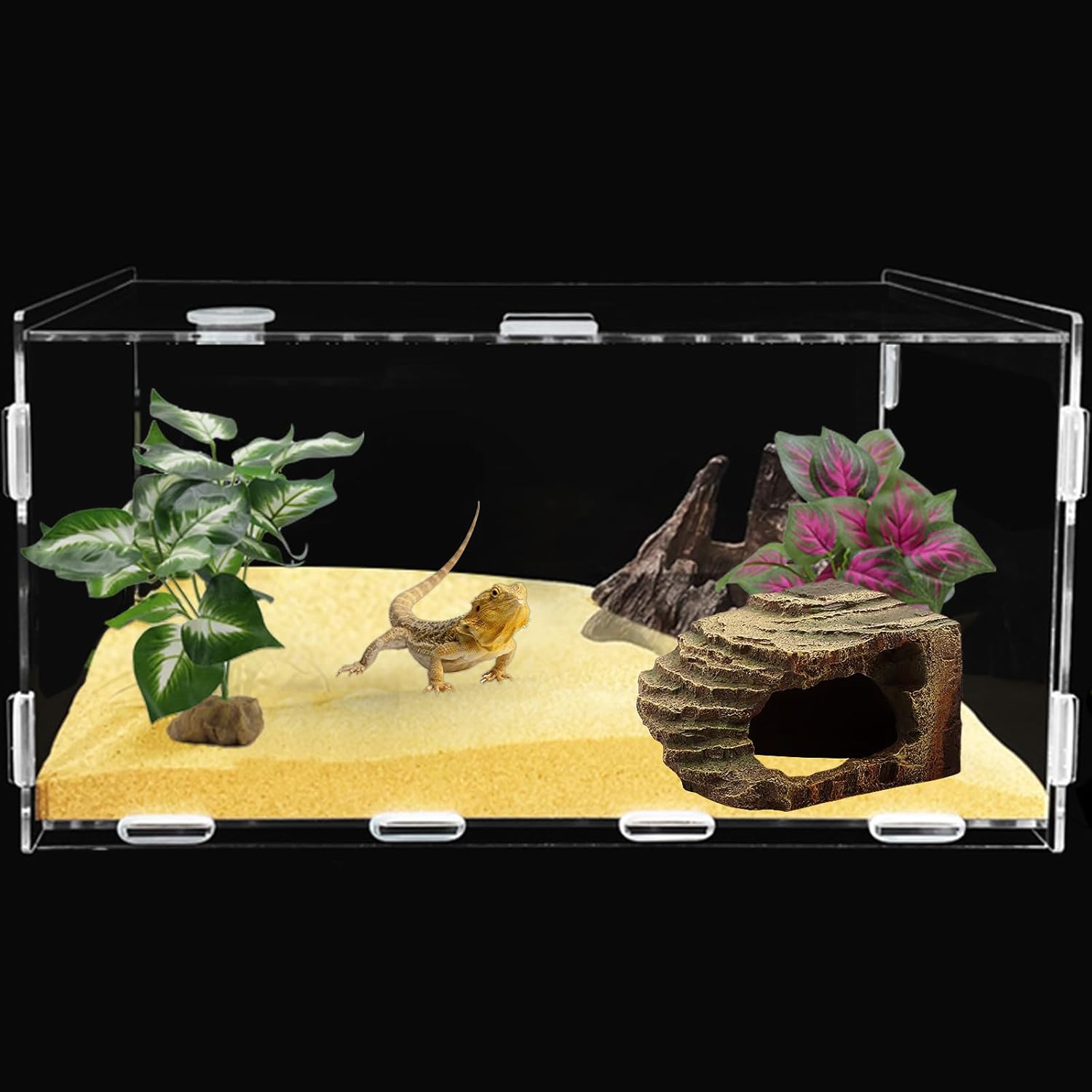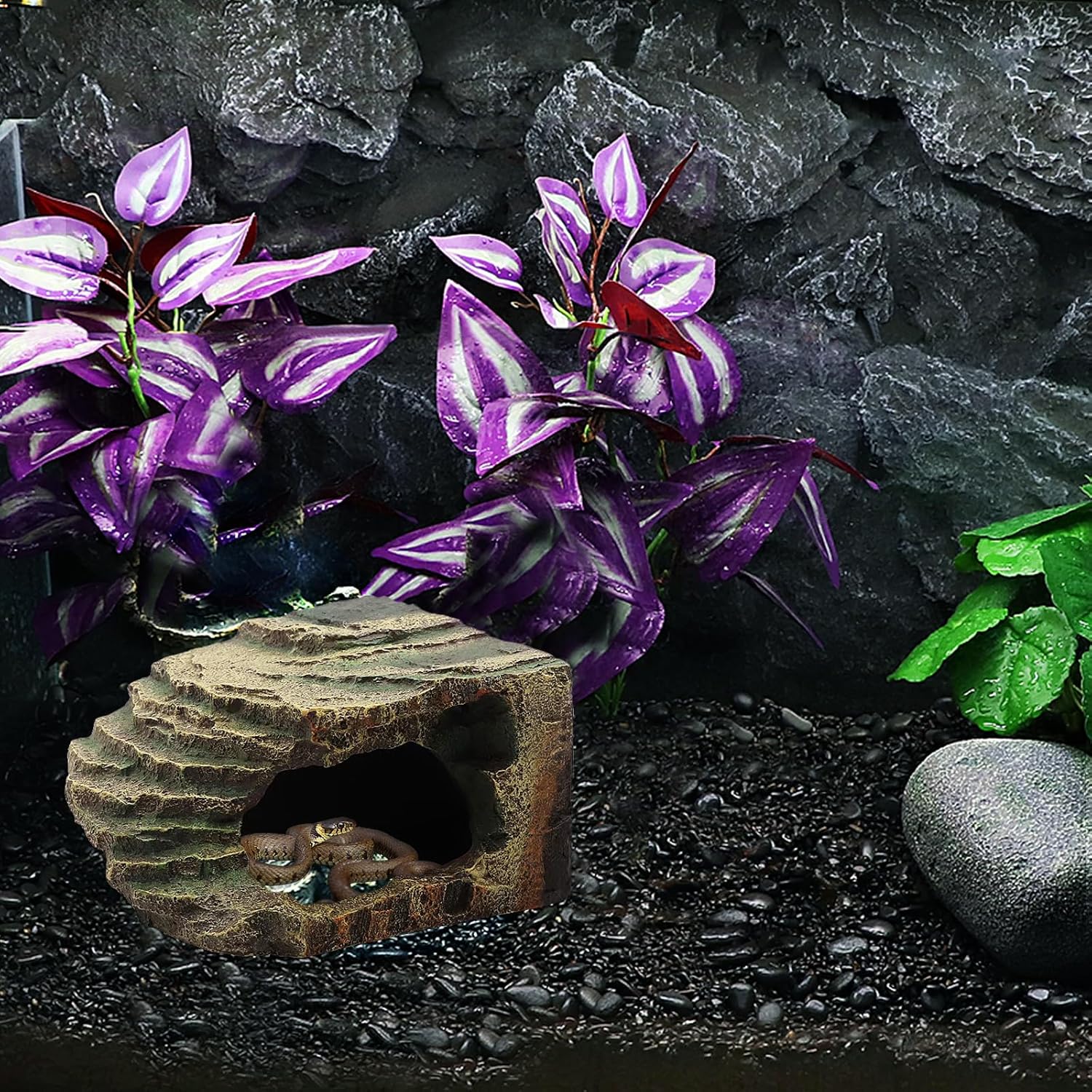 Aquarium Décor Thematic Ornaments Resin Reptile Rock Hide Cave, Decorative for Aquariums & Terrariums, Great for Reptiles, Amphibians