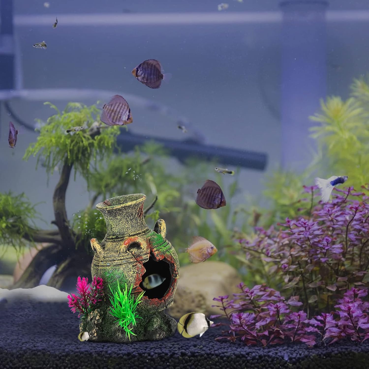 Aquarium Decorations Vase Jar Jug Sunken Fish Tank Decoration Ornament Landscaping Rocks Cave Saltwater Freshwater Smworldnet027 & Medium Fish Garden Pond Ornaments Resin