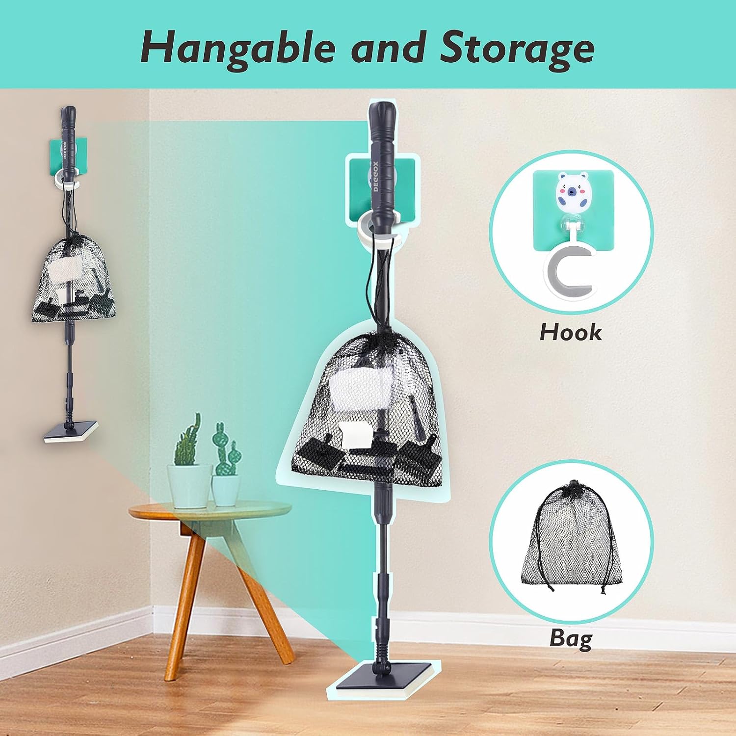 Extendable Handle :Features an adjustable 22.75”-35.4’’ handle that reaches every corner of your tank without the need to lean in or put your hand in water, maintaining a comfortable posture while cleaning.