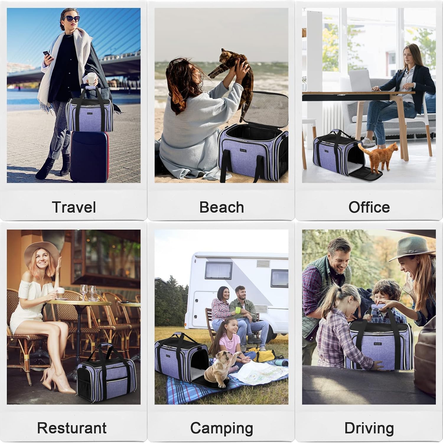 Widely Use and Easy to Carry:Handheld; Carried on an adjustable shoulder strap; Dog/Cat carrier; Car seat; Luggage top; Under an airline seat, ideal for long trips, car rides, plane rides, vet visits, holidays, possible airport delays, waiting stops and family use.