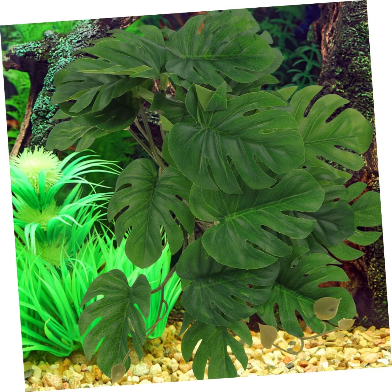 terrarium plants– artificial plant with suction cup makes your pet feel at home and exercise while climbing about in his own jungle branch.