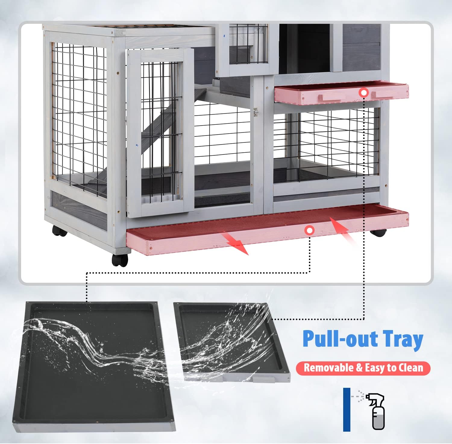 EASY TO SETUP AND CLEAN:The rabbit hutch simple overworldnet027 structure which is quite easy to assemble, it is better to use electronic drill to assemble, and the estimated assemble time is about 20 minutes. Removable tray makes it easier for you to clean the hutch, a cleaner hutch will give your pet a more comfortable experience to live in.