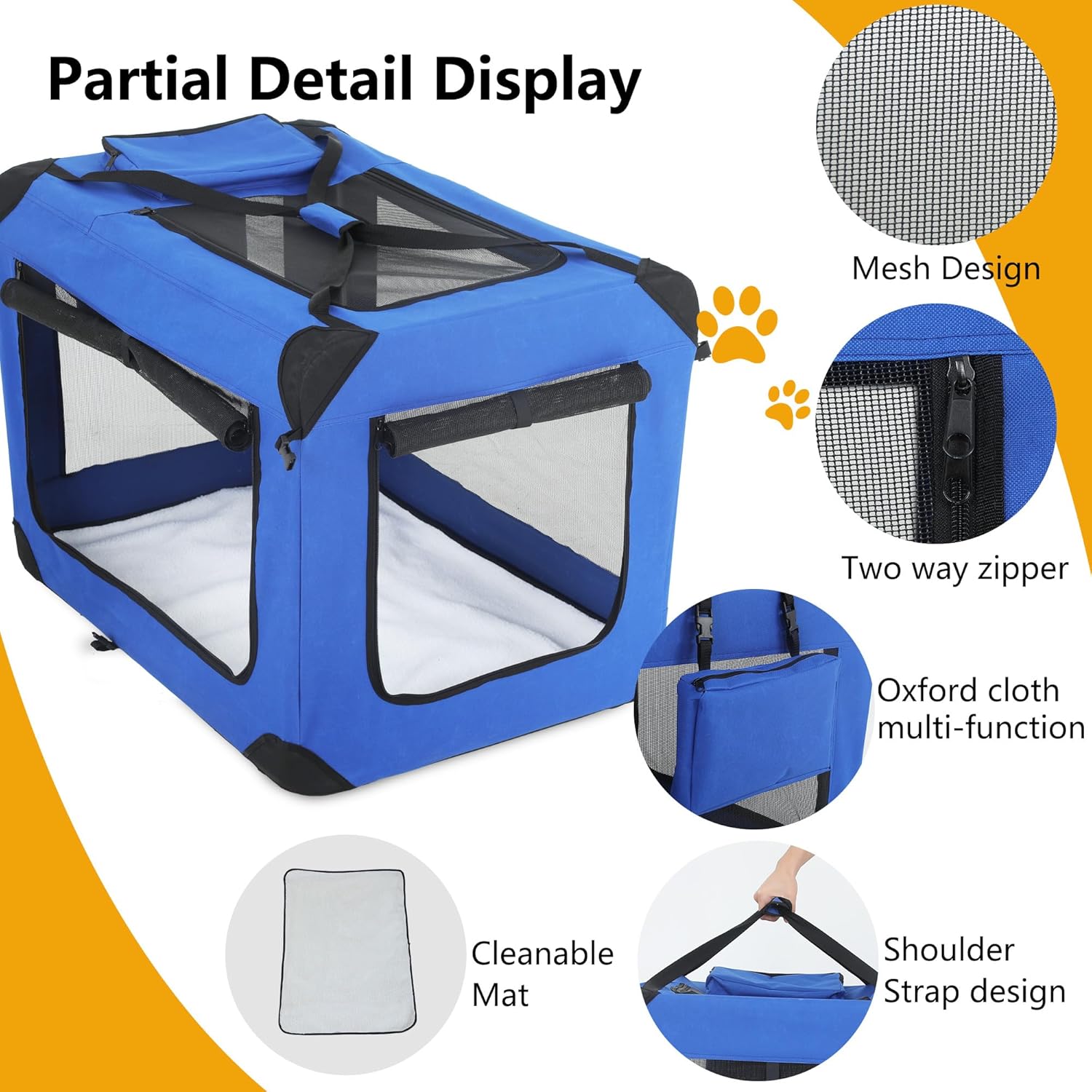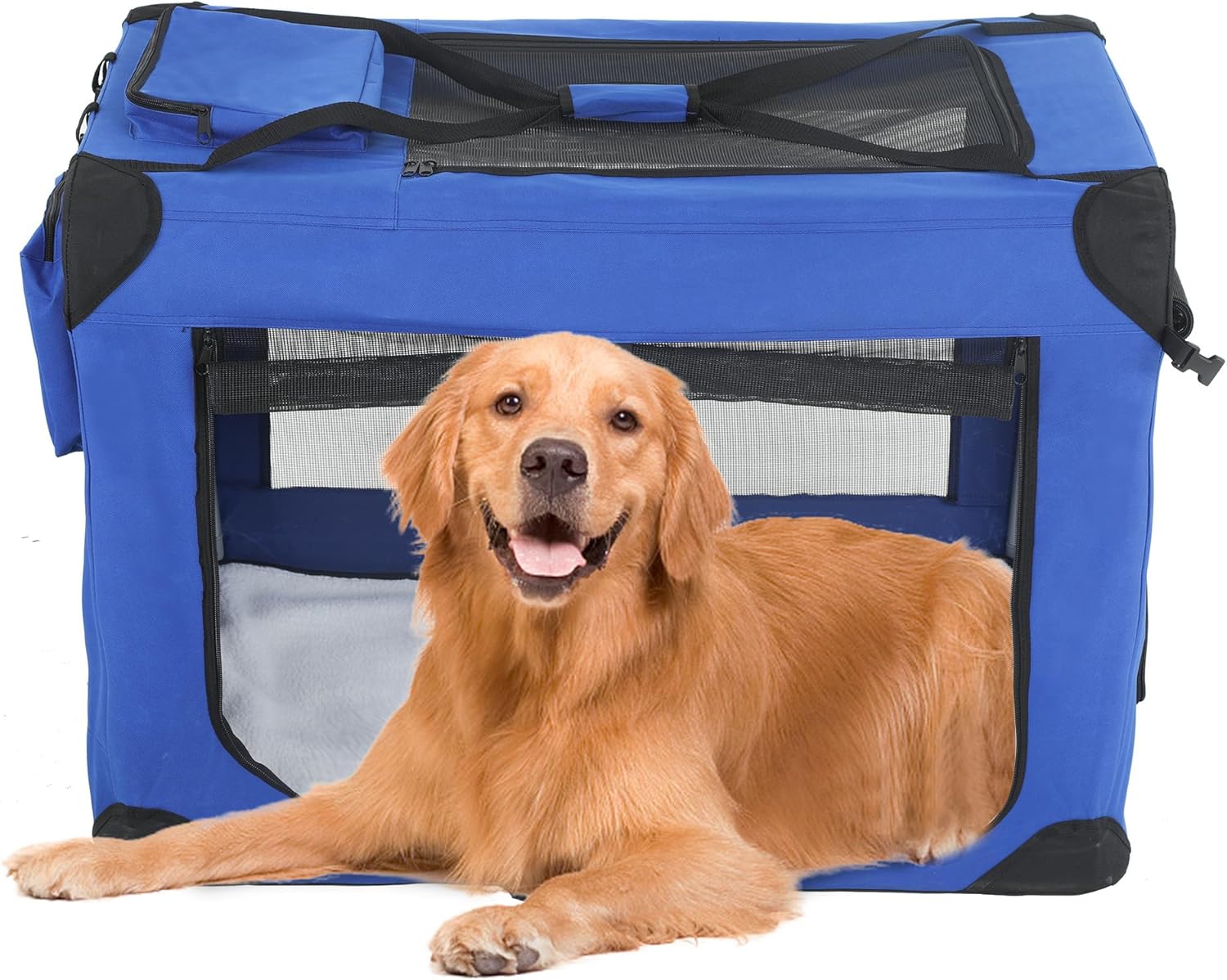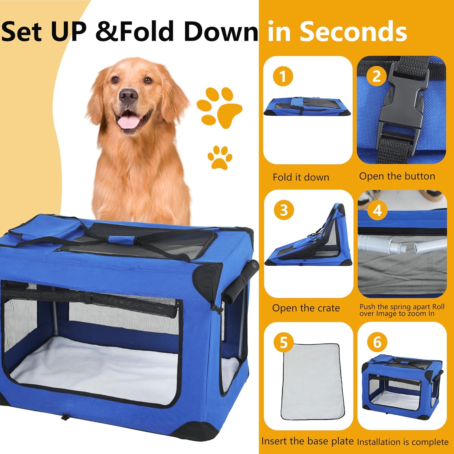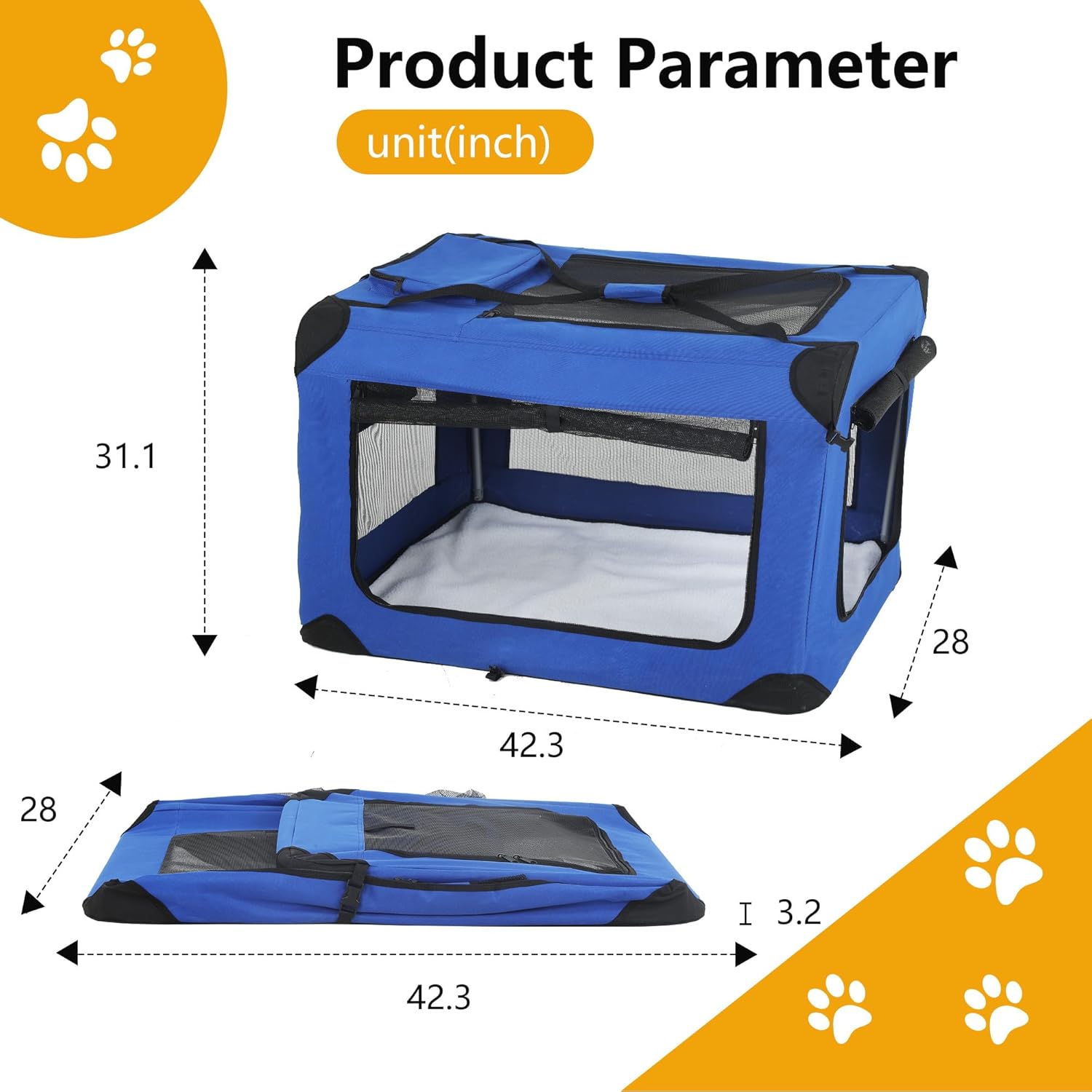 BestPet 42 inch Collapsible Dog Crate for Large Dogs, 3-Door Portable Folding Soft Dog Crate Dog Kennel Lightweight Foldable Travel Dog Crate with Mesh Windows for Indoor Outdoor Travel,Blue