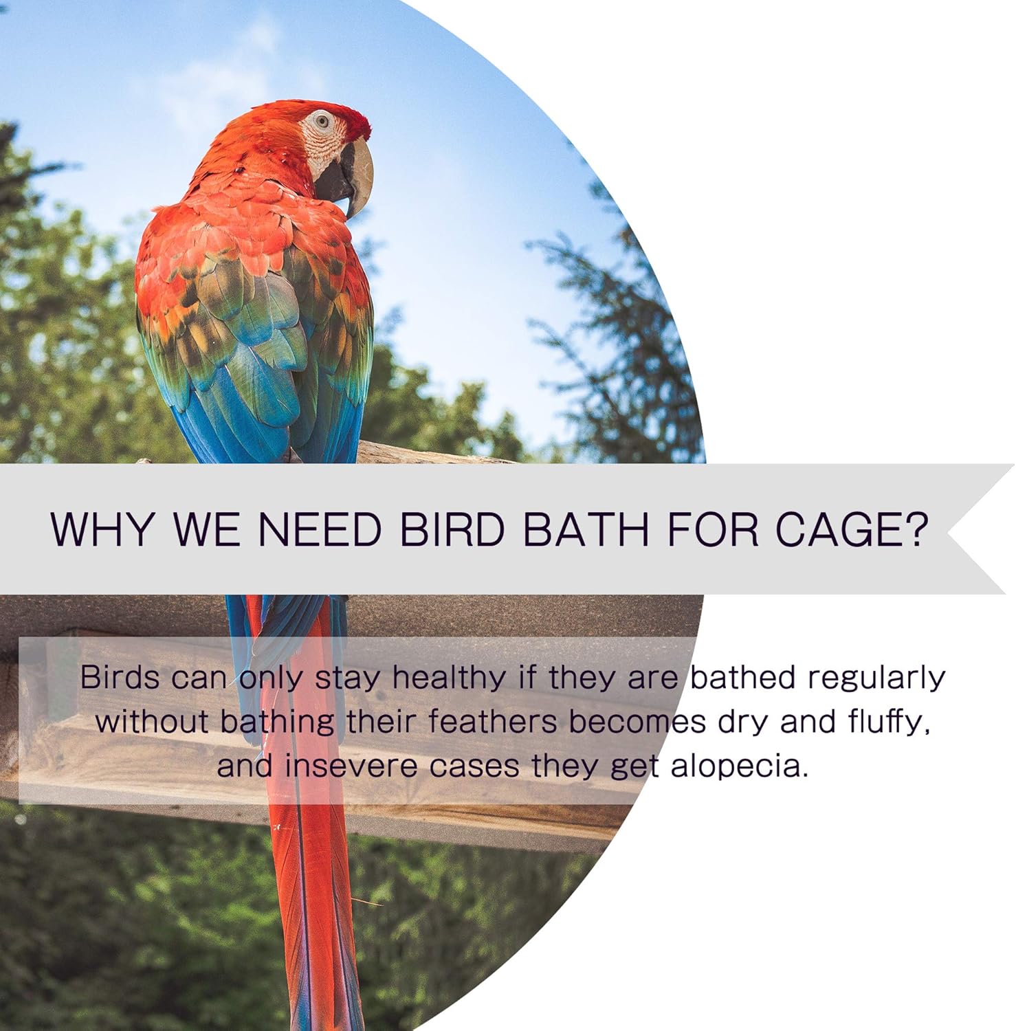 – Bird bath cage can be used not only as a bath basin but also as a feeding basin. The transparent birdbath box can clearly watch the activity of birds.