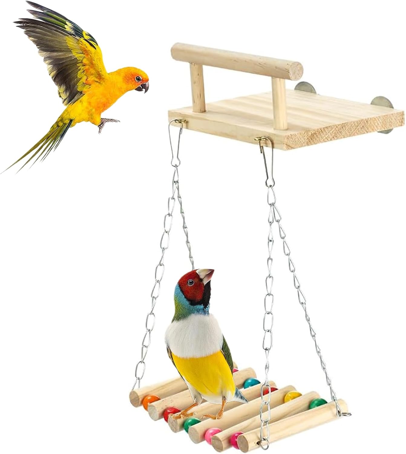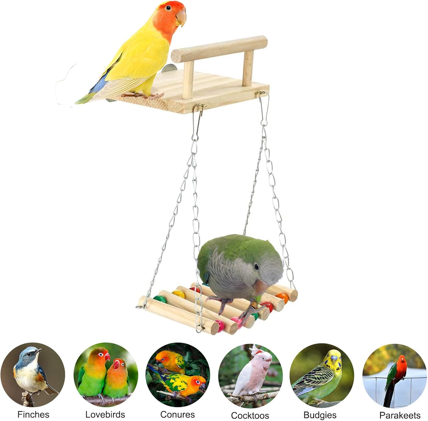 Bird Perches Platform Swing,Natural Wooden Bird Hammock Exercise Stands Parrot Perches Cage Toys for Parakeet Cockatiel Conure Lovebird Hamster Chinchilla
