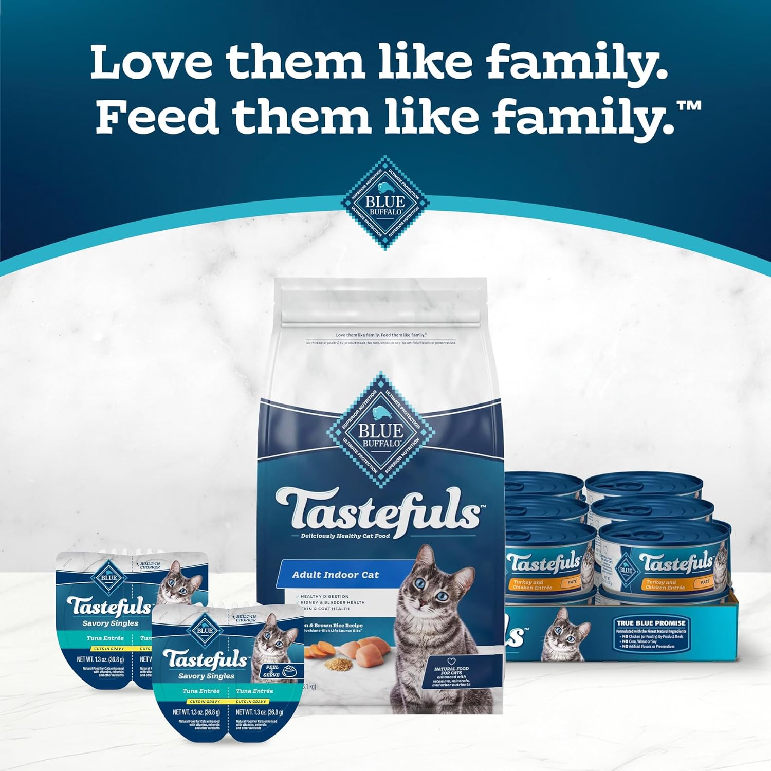 Contains: One (1) 3-lb. bag of BLUE Tastefuls Indoor Adult Dry Cat Food, Chicken & Brown Rice Recipe