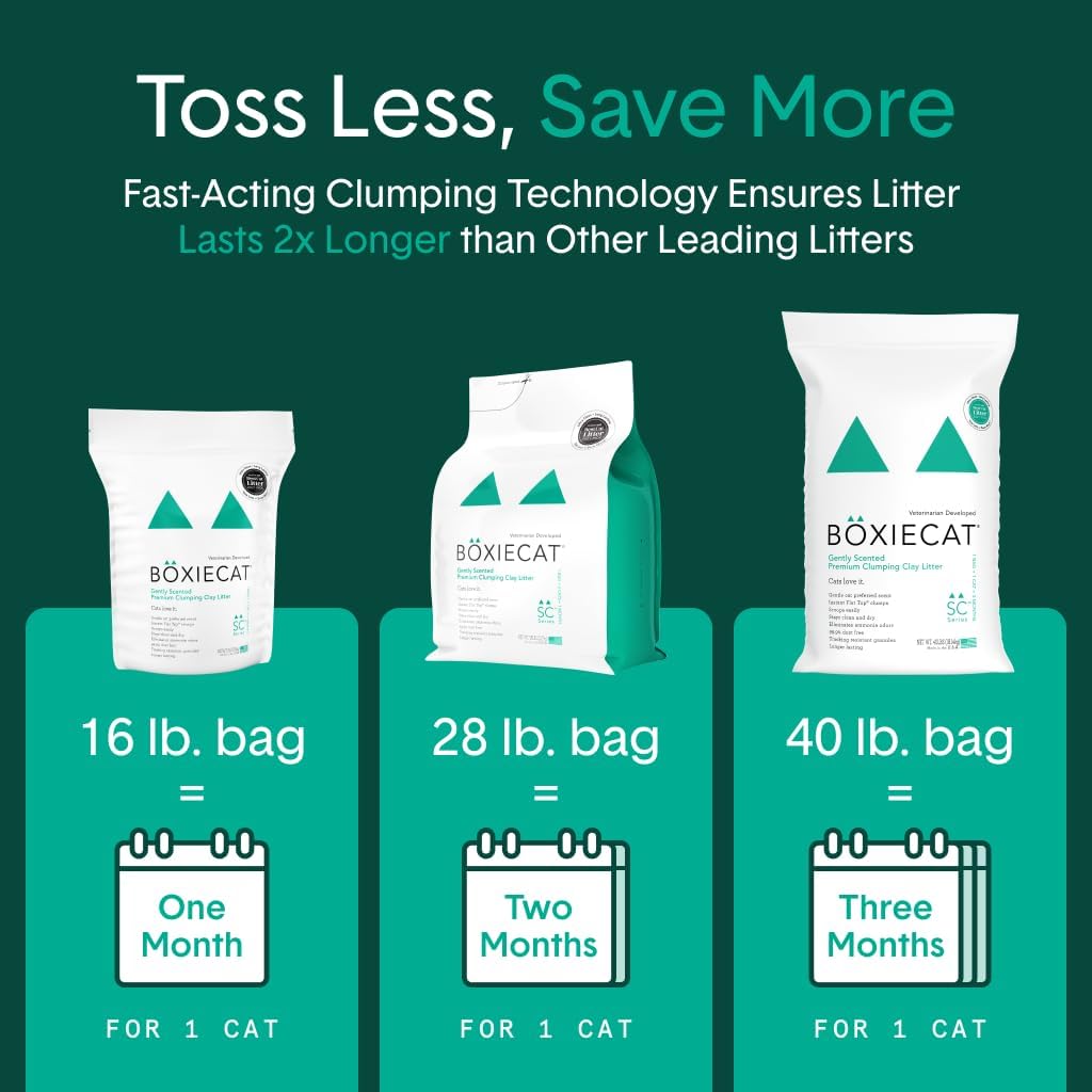 MADE TO LAST: Boxie litter products last between 30-40 days (2x longer than other litters), making it the highest quality, longest lasting litter on the market. You only need to replace it once a month.